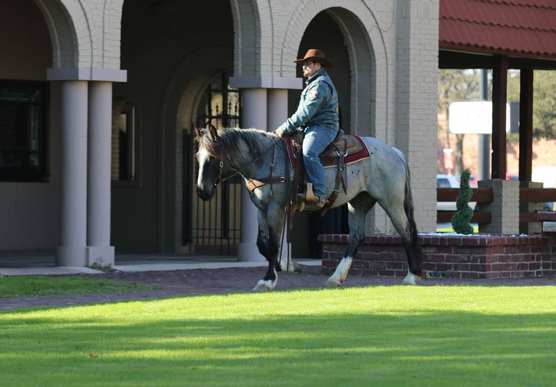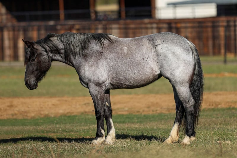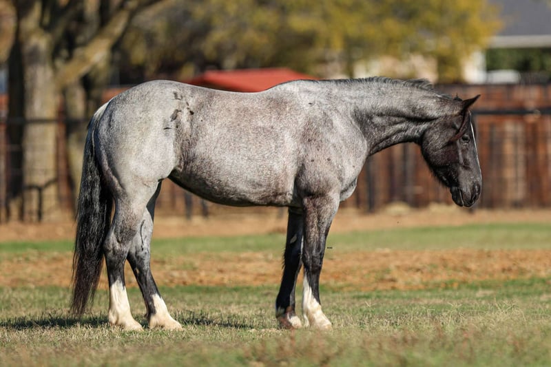 ONLINE AUCTION Place your bids at www.PlatinumEquineAuction.com Starting Bid $3500 Auction ends May 18th, 2025 Need a new saddle? Check out White Rock Saddles on our website or Facebook! Are you ready to add a touch of class to your barn? Look no further than our stunning blue roan mare, Alexander’s Pistol Annie, affectionately known as Blue Bell around the barn. This 2020 model is not just any horse; she’s a one-of-a-kind beauty registered with the American Shire Horse Association Sport Horse Registry. Standing 15.3 hds tall and as stout as one comes. Blue Bell is the whole package! With all the right buttons to make her a versatile partner, she’s ready for you to mold her into your dream horse. She’s been started over jumps and shows incredible promise as a hunter-jumper or a 3-day eventer. And let’s not forget her dressage potential—her floaty trot and canter are sure to turn heads in the arena! This mare is athletic, eager to learn, and always willing to please. Blue Bell glides through a walk, trot, and lope with beautiful, smooth transitions. She’s soft in the mouth, breaks at the poll, and has a big, impressive sliding stop that will leave you in awe. Blue Bell isn’t just a pretty face—she’s also a seasoned traveler! She’s been hauled to barrel races and ropings, proving to be completely unbothered by the hustle and bustle. Whether it’s a fun ride down the trails or a trip to the historic Fort Worth Stockyards, with horse-drawn carriages, loud music, and heavy traffic, she remains calm and collected, always stealing the show with her stunning looks. Her trail riding skills are top-notch; she confidently crosses logs, bridges, and water, tackling any terrain with ease. Blue Bell has even ventured into the mountains and rocky paths, proving her versatility. Plus, she has a natural knack for ranch work, showing off her impressive cow sense as she learns to pen rope and heel the donkey. Gentle and sweet, Blue Bell is a dream to handle—whether in the stall or out in the pasture. She’s easy to catch, stands patiently for the farrier and vet, and is a breeze to bathe. Loading and unloading from the trailer is a non-issue. Don’t miss out on the opportunity to own this extraordinary blue roan mare that will make all your friends and neighbors jealous. Blue Bell is ready for her next adventure with someone who appreciates her unique charm and versatility. Come see her in person! Or if you aren’t able to make it schedule a FaceTime showing with us. If you need help with transport don’t hesitate to ask we have a list of reputable haulers that can get her safely to your doorstep WORLD WIDE including, Alaska , Mexico, Hawaii and Canada. Contact M $ Performance Horses Michelle 661-817-9120 with any questions or to make a Buy It Now Offer. Located in Stephenville, TX. ONLINE AUCTION Place your bids at www.PlatinumEquineAuction.com Starting Bid $3500 Auction ends May 18th, 2025 Need a new saddle? Check out White Rock Saddles on our website or Facebook!