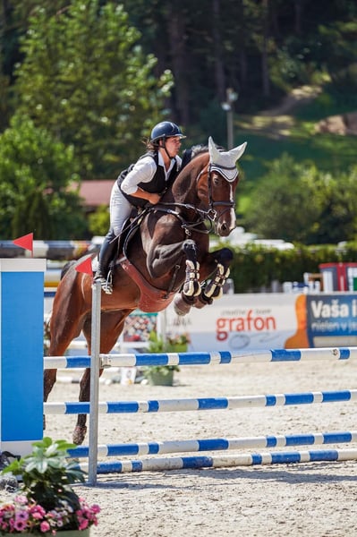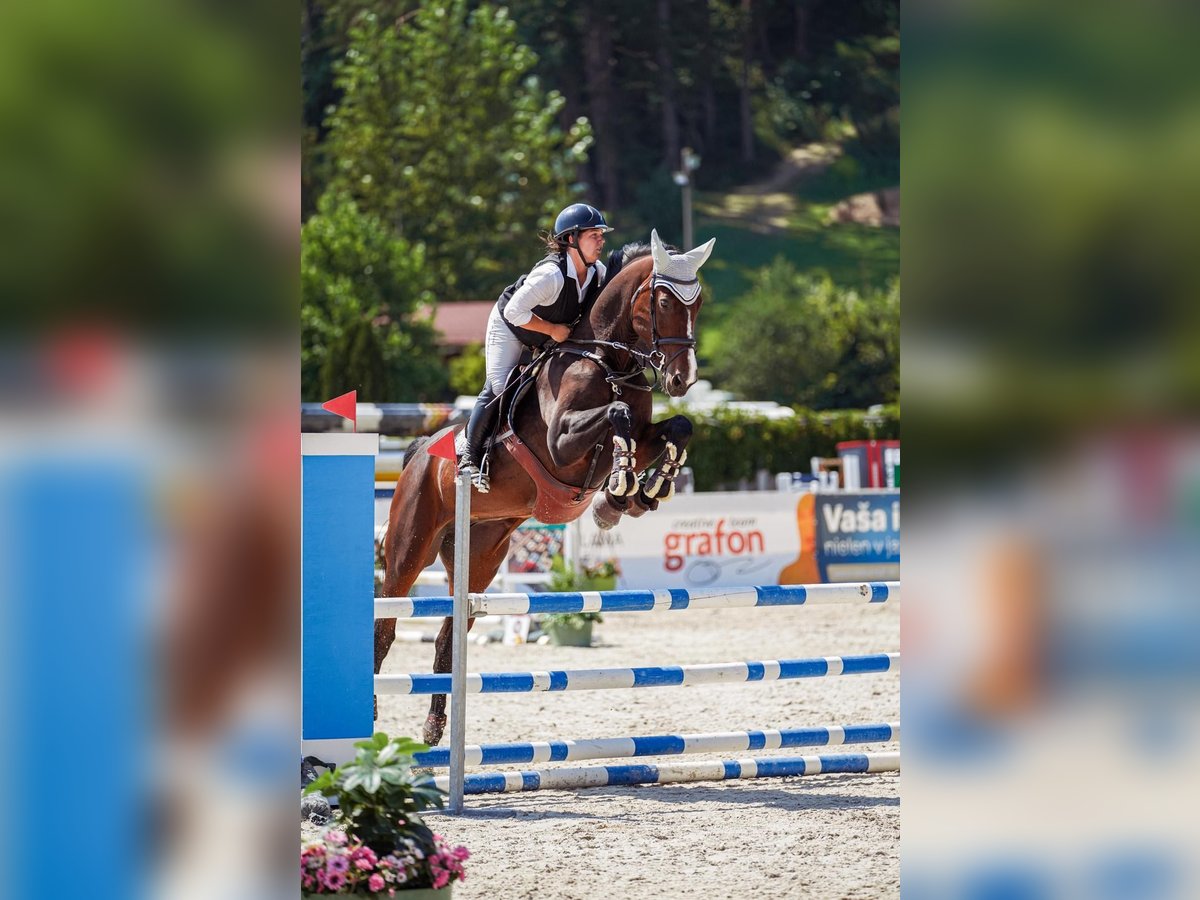 Lovely 7-year-old mare with a great character and a very good attitude towards work. She is a tall, elegant and eye-catching mare with a kind temperament and very easy rideability. She is brave and always willing to jump, taking the rider safely to the other side of the fences. She does not look at fillers or new environments. Currently competing up to 1.20m with clear potential to progress to higher levels thanks to her scope and ability. She is suitable for an amateur or junior rider, and could also be a great partner for a more experienced young rider. Easy to handle in all situations, with good manners both at home and at shows. Clean X-rays available, completely healthy, with no bad habits. A very promising horse for someone looking for a safe yet talented partner. For more informations please contact me via WhatsApp: +421911318318