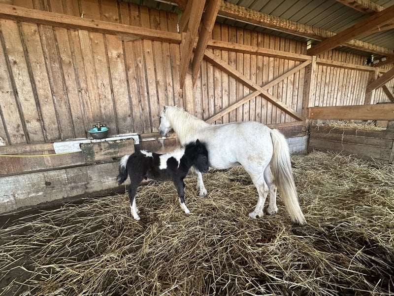 Verkaufe jungen Hengst – Vielversprechendes Kinderreitpony in Entwicklung! Zum Verkauf steht ein entzückender junger Hengst, geboren im Jahr 2024, mit einem aktuellen Stockmaß von ca. 110 cm. Er stammt aus einer vielseitigen, robusten Ponyfamilie und zeigt jetzt schon das liebe, ausgeglichene Wesen seiner Mutter und Schwester – beide sind unerschrocken und zuverlässig im Umgang. Besonderheiten: • Hengst, geboren 2024, noch im Wachstum • Stockmaß ca. 110 cm, ideal für Kinder oder kleine Reiter*innen • Porzellan Schimmel – besondere Farbentwicklung möglich • Freundlich, brav im Umgang und sehr menschenbezogen, beherrscht das Fohlen ABC • Zeigt sich neugierig und gelassen – ein echtes Kinderpony in Aussicht • Kann bei Bedarf eingestellt bleiben und später eingefahren werden Dieser junge Hengst ist gesund, aufgeweckt und bringt alles mit, um zu einem verlässlichen Partner für Kinder und Freizeit zu werden.
