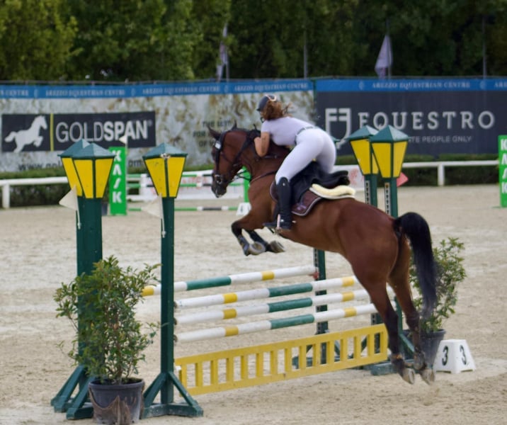 Manhattan is a mare with a proven track record of significant competition results. She is an ideal partner for an experienced rider, as she is energetic and spirited. She demonstrates excellent jumping mechanics, is attentive and responsive in the arena, and has a determined yet respectful nature. She is very skilled in shoeing and grooming. When handled on the ground, she is calm and well-behaved.