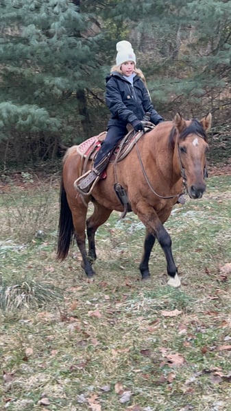 Elegant Dun Mare for Sale – Perfect for Western Riding Enthusiasts Discover this beautiful mare, born in 2012, with a stunning dun coat that shines in the sunlight. Standing at 15 hands, she offers an ideal size for riders of various experience levels. With her smooth gait and calm demeanor, she excels in Western riding disciplines, making her a versatile and reliable partner for trail riding, pleasure, or training. This mare's gentle nature and responsive attitude make her a pleasure to work with, whether you're an experienced rider or just starting out. Her well-balanced build and friendly personality ensure a rewarding riding experience. Don't miss the opportunity to add this charming mare to your stable. Contact us today to learn more and arrange a visit!