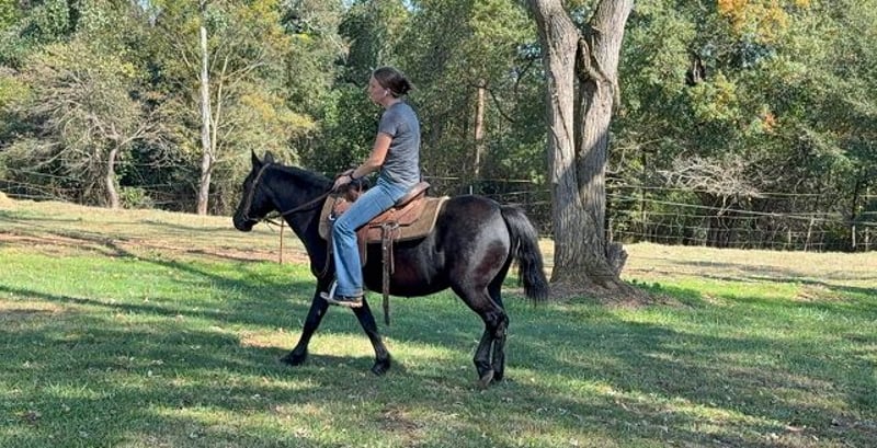 "AVAILABLE ON ONLINE HORSE AUCTION AT www DOT MagicHorseAuction DOT com BIDDING OPEN NOW thru TUESDAY | December 23TH! - BUY IT NOW AVAILABLE! *Final price will be determined on auction site* CONSIGNOR CONTACT INFO: Southern Performance Horses 706-963-9251 LOCATION: Carnesville, GA "Raven is a 12.3 hand 13 year old pony mare that is built like mom or dad’s big horse. Raven has excellent Barn manners cross ties perfectly is easy to groom and tack up. Raven has perfect hooves and clean legs and is sound in every way. Raven absolutely loves snack time. It is one of her favorite times of the day. This size Pony is extremely hard to find, especially when they’re built like her. Raven is broke to ride and has been on lots of trail rides, wagon trains etc. Raven is easy to catch and is fine in the pasture with other horses or alone. Raven is up-to-date on vaccines, deworming, farrier care and coggins. Raven will ride out on a trail ride. She is also fine to Pony from another Horse if you have an inexperienced kid. I would not say she is for your three year-old to throw and turn them loose, but in the round pen or on the lunge line, she would be perfect to learn on, but she is very safe and steady. Raven could go any directions if you wanted a little rodeo play day Pony or a Hunter Jumper she has super nice movement and is very floaty she could go any direction desired. Raven would make an absolute awesome trail Pony and is even large enough for an adult rider. Girl in the videos is 5’9 and she is plenty stout to carry that type of rider. Raven is excellent barefoot. She will go right down the gravel road without hesitation. Raven was broke by the Amish used by the Amish and was also a broodmare she is an excellent mother. Raven is definitely more whoa than go and is not quick at all. Located in Carnesville, Georgia Delivery is available for a fee pick up is always welcome We are also willing to help find shipping anywhere needed.