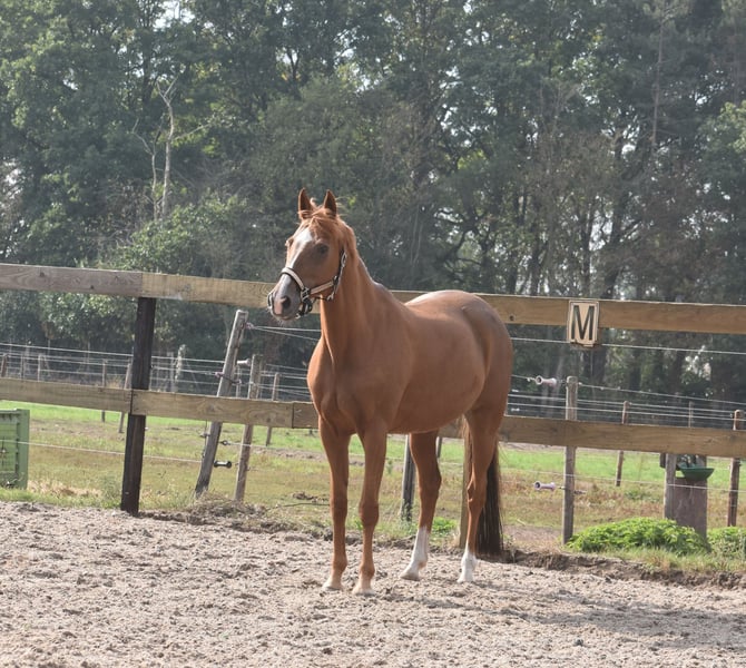 Sissi is een pracht van een paardje! Lekker vol en ze glanst je tegemoet. Ze is hier en voorheen superbraaf gereden. Het is een E merrie van ca 153 m , toont groter door haar body. Sissi is ouder, geboren 31-05-2006, maar kerngezond en vrij van stalgebreken. Ze is onlangs gekeurd inclusief bloedafname , en geschikt bevonden voor de recreatie. Ze heeft een volle stamboom van Fortuna C Chenu x Pershing. Sissi is hier te verzorgen en te berijden door beginnende ruiters. Prijs 2750,- incl. goed merkzadel en dekje.