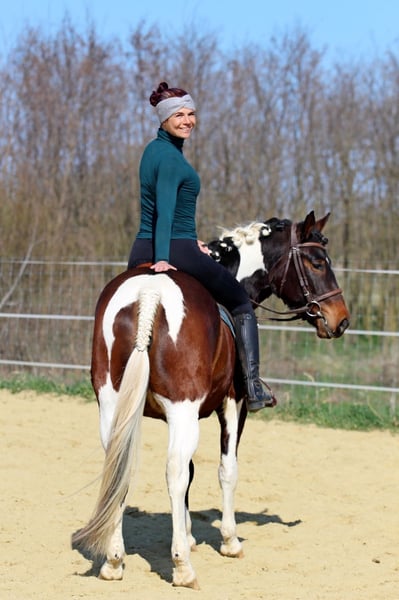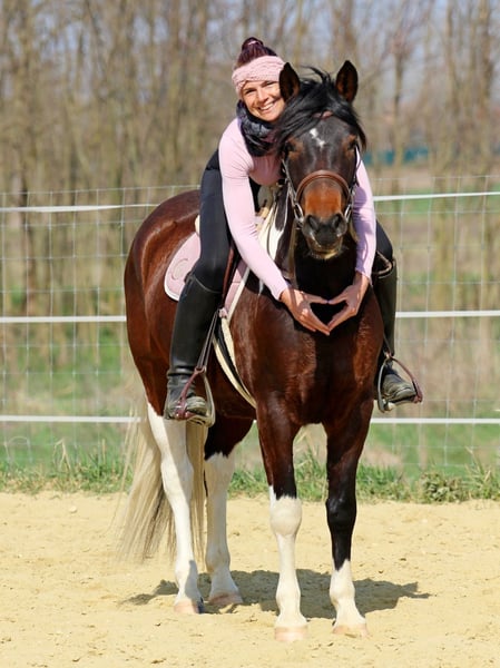 Ribizli ist eine dreijährige Stute mit ganz besonderem Charme und hervorragendem Charakter. Sie überzeugt durch ihre Aufmerksamkeit, ihre Menschenbezogenheit und ihr ausgeglichenes Wesen. Aufgewachsen in der Herde mit gleichaltrigen Pferden ist sie bestens sozialisiert und kennt mittlerweile auch die Boxenhaltung. Ribizli ist eine sportliche motivierte Stute mit guten Bewegungen und dem Willen immer zu gefallen. Sie reagiert fein und unmittelbar auf Hilfen und arbeitet motiviert und lernfreudig mit. Die Stute bleibt aber stets klar im Kopf und absolut brav. Durch ihre Veranlagung - ihre Mutter ist ein Paint-Horse - würde sie sich sehr gut für den Westernbereich eignen, ist jedoch vielseitig einsetzbar. Aktuell misst sie ca. 150 cm Stockmaß und befindet sich noch im Wachstum. Ribizli geht momentan barhuf und zeigt dabei keinerlei Probleme, sie kennt aber auch den Hufschmied. Trotz ihres jungen Alters zeigt sie sich bereits sehr zuverlässig und vermittelt ihrem Reiter ein sicheres Gefühl – ein Pferd mit großem Potenzial und Herz Ribizli kann natürlich gerne jederzeit nach Vereinbarung bei uns auf der Horseofcourse-Farm kennengelernt und probegeritten werden. Videos auf Instagram oder Tik-Tok oder natürlich auch gern per Whatsapp. Die Pferde und wir freuen uns auf euch! Ein Transport kann gerne bei Bedarf von uns organisiert werden. Horseofcourse-Farm Dora & Rita Szent Imre Straße 36 9099 Per, Ungarn