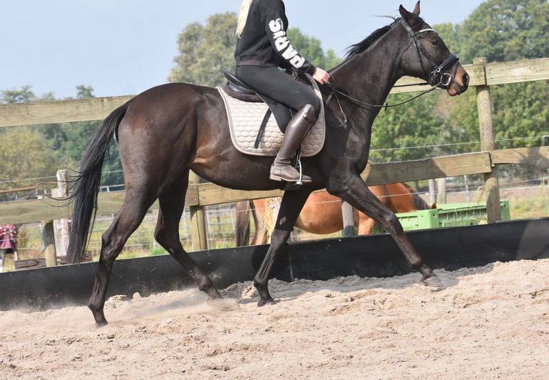 Maak kennis met Arya, een prachtige jonge merrie met een afstamming van Vocalised x Laughing Matter. Deze charmante dame weet met haar uitstraling en karakter direct een plekje in je hart te veroveren. Door haar volle stamboom en fijne karakter is ze ook interessant voor de fokkerij. Ze is ca 160 m hoog. Arya is hier ontzettend braaf en nuchter. Omdat ze jong is moet je wel rustig met haar opbouwen met voldoende rust, maar je kunt zo op haar gaan stappen. Ze zet hier nooit 1 pas verkeerd ! Ze is nieuwsgierig van aard en komt in de wei altijd even bij je kijken. Een echt mensen gericht paard! Ook zeer sociaal in de kudde. Een betrouwbare, werkwillige merrie met een gouden karakter én toekomstperspectief als je beste maatje. Ze is geen bewegingswonder. 3450,-