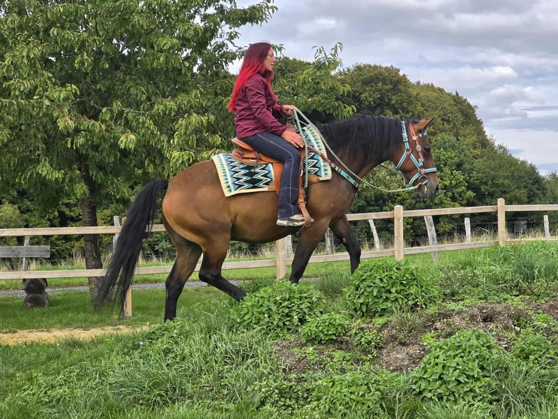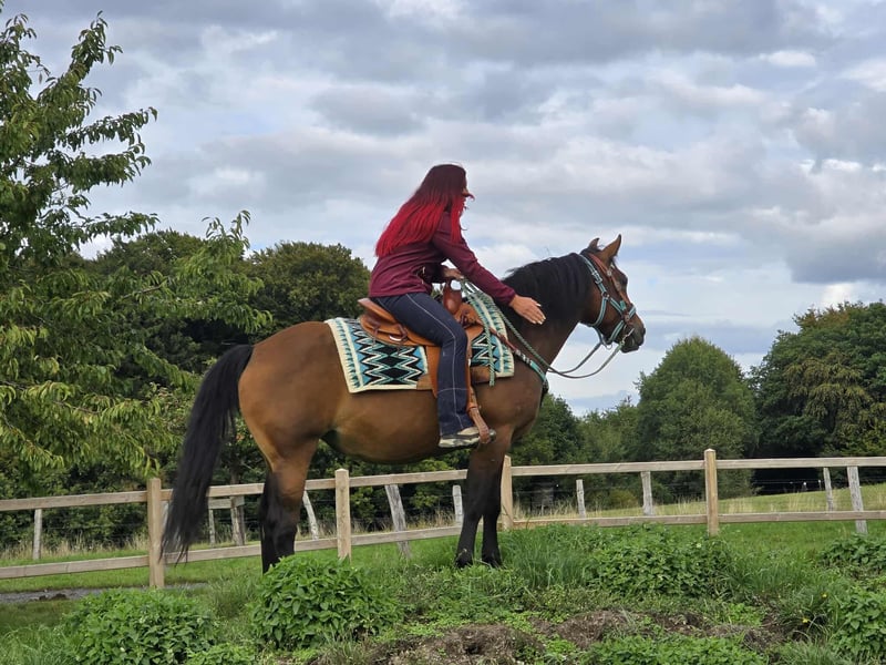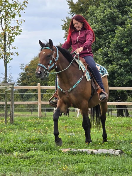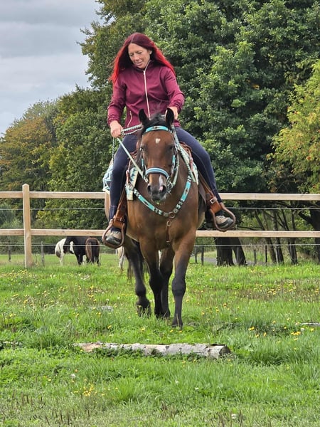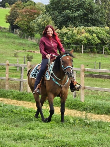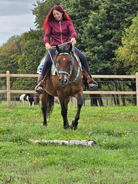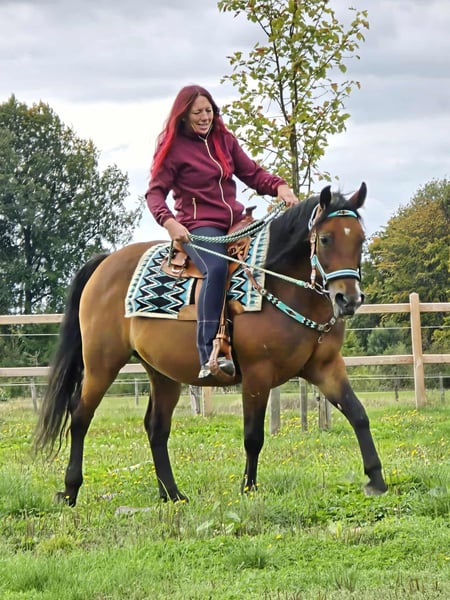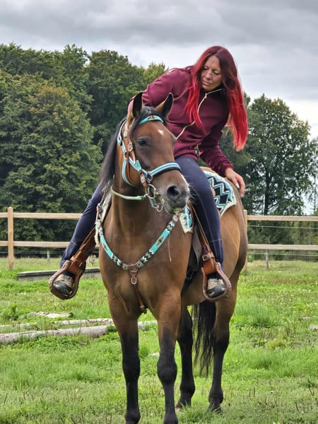 Beautiful, gentle leisure and trail riding horse for sale! Born: 2021 Height: approximately 15.5 hh Price: €6,500 CECILIA is a charming, well-built mare with a gentle temperament and a balanced nature. She impresses with her calm demeanor and an open, human-oriented character – ideal for those seeking a reliable leisure horse with clear nerves. Whether in the terrain, on the riding arena, or in daily handling: CECILIA always remains friendly and cool. Thanks to her composure and sure-footedness, she is also perfectly suited for trail riding. ✅ What CECILIA comes with: Microchip and passport - EU pass • Gently backed, familiar with saddle and rider’s weight • Very calm, fearless, and clear-minded for her age • Well-behaved in daily handling (grooming, leading, tacking up, etc.) • Good conformation • Current pre-purchase examination available! • Great for leisure riding, family, and trail riding Please note: CECILIA is still young and should continue to be encouraged – but she has all the qualities to become a loyal leisure partner. Our horses – lovingly cared for: • Regularly dewormed • Checked and maintained by the farrier • Osteopathically examined if needed In our farm shop: used Western saddles, bridles, halters, and more. Accessories & transportation can be organized conveniently and affordably for you! Our service for you: To help you make a confident decision: • 3-month exchange guarantee (contractually fixed) • Trial ride available: → €35 for the first horse, €25 for each additional – deducted if purchased on the same day • Spend time with the horse, ride, walk, or have it ridden in front of you • €100 discount for immediate pickup or same-day transport • Personal support & honest advice during the trial ride Interested? We look forward to your call!