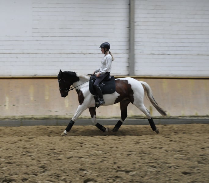 She can be ridden in all three basic gaits, but still needs some further training here and there. Overall, she shows a lot of enjoyment in this work and always wants to do everything right.