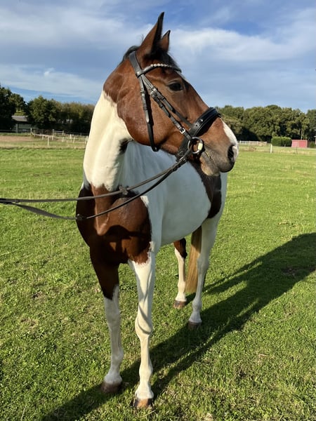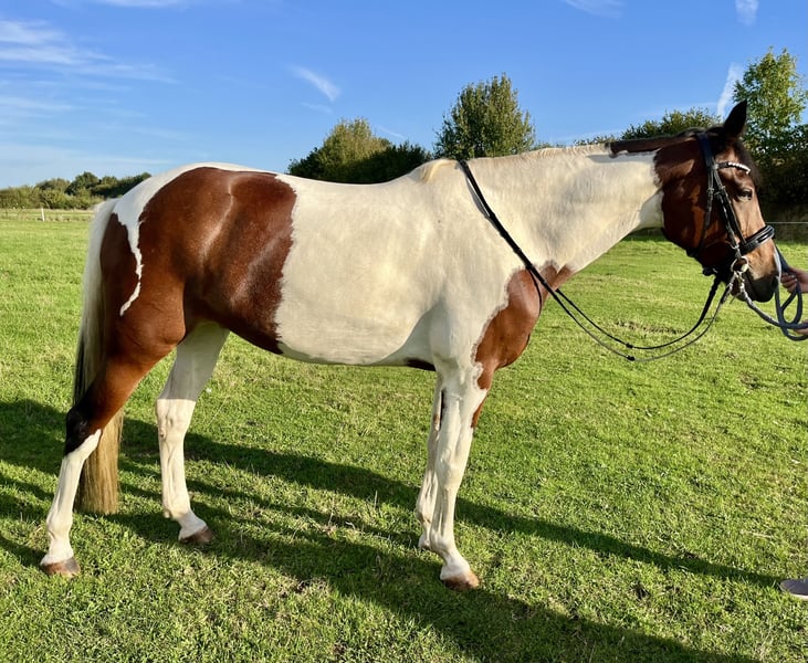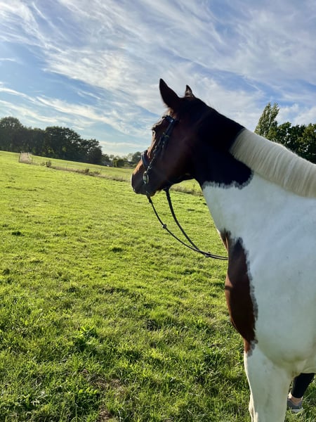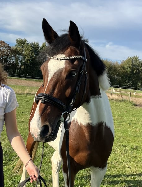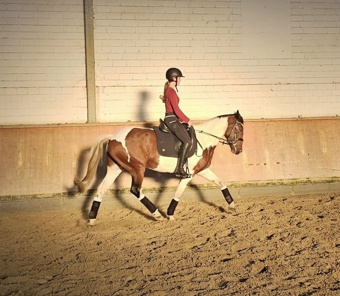 Zum Verkauf steht diese 7 Jahre alte Stute Indian Summer („Indi“). Indi ist 1,54 m groß und wurde mit 4 Jahren angeritten. Anschließend durfte sie sich erstmal noch körperlich entwickeln, bis sie dann langsam an das Reitpferdeleben gewöhnt wurde. Neben dem Reiten hat sie auch in der Longen- und Bodenarbeit einiges gelernt. Hier zeigt sie sich lernwillig und motiviert. Unter dem Sattel ist sie grundsätzlich brav, fordert ihren Reiter jedoch gerne heraus. Deshalb kommt sie nur für erfahrene Reiter infrage. Auch wenn wahrscheinlich etwas Traberblut in ihr steckt, kann sie in allen drei Grundgangarten normal geritten werden und benötigt hier und da noch etwas Sicherheit. Insgesamt zeigt sie auch an dieser Arbeit viel Spaß und möchte immer alles richtig machen. Nähere Infos, sowie Reitvideos geben wir auf Anfrage gerne heraus. Auch ins Gelände durfte Indi bereits hineinschnuppern. Hier benötigt sie viel Sicherheit, weshalb wir diesen Bereich nur so weit gefördert haben, wie es uns möglich war. Im Umgang ist Indi verschmust, menschenbezogen und beim Putzen wie auch beim Schmied unkompliziert und brav. Charakterlich ist sie etwas speziell, weshalb sie nur als „Ein-, höchstens Zweimann-Pferd“ abgegeben wird. Wir wünschen uns für Indi einen Menschen mit Jungpferdeerfahrung, der konsequent, geduldig und liebevoll ist – und Freude daran hat, sich vielseitig mit ihr zu beschäftigen und mit ihr ein Team zu werden. Bei Interesse melde dich gerne under folgender Nummer: 015759046235 Am besten erreichen kannst du mich per WhatsApp. Zubehör ist im Kaufpreis zum Teil enthalten oder kann gegen Aufpreis miterworben werden. Kein Verkauf an Händler.