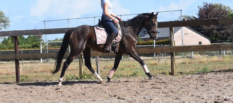 Eyecatcher: correct, goudeerlijk 9 jarige rijpaard Paddy is een 9 jarige dame van ca. 1.62m hoog, met een afstamming van Leading Light x Caoba by Hernando ( FR) Ze heeft een chique, maar toch degelijke bouw met mooie lange benen en laat zich hier fijn rijden. Paddy is allesbehalve lui en ze werkt graag voor haar ruiter. Daarbij heeft ze een zacht mondje en reageert ze fijn op de hulpen. Een zware hand is bij haar absoluut niet nodig. Paddy is verkeersmak, gezond en vrij van gebreken. Voor de fokkerij is ze eveneens zeer interessant! Is onlangs door de tandarts behandeld, in bezit van een recent rapport. Prijs € 5950,- incl merkzadel en dekje