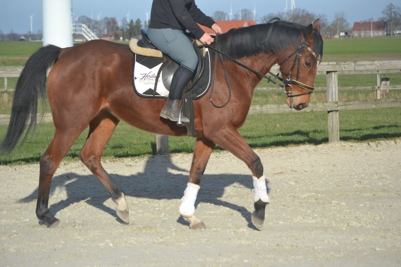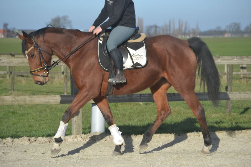 Nice all-round mare, 7 years old and 16.1 hands high. She is well-behaved and patient in the grooming area, easy to ride, and enjoys jumping. She is social with her peers and free of any vices. Additionally, she is calm with the farrier and the veterinarian. Location: Wuustwezel For more information or a video, please send a WhatsApp message to +31 645719488.