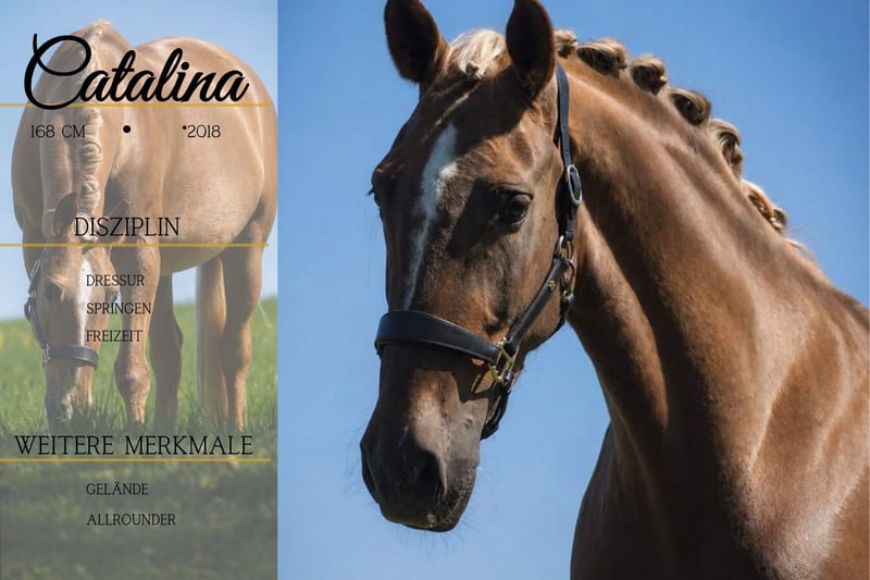 Catalina es una yegua palomino de 8 años, aproximadamente 1,68 m de altura. *Catalina* es un caballo único en su especie. Hermosa, bien montada y bien entrenada, perfecta para cualquier diversión. Catalina se mueve muy bien en la pista y cuenta con una buena preparación, con un asiento cómodo y una bonita técnica de galope. Ella camina sola y en grupo en el campo, incluso sin silla de montar. Con ella, se puede hacer cualquier actividad: montar en el agua, sin silla, con cabezal de cuerda, saltar troncos. Es una excelente todo terreno con un carácter fantástico. Siempre dulce, trae mucha alegría y transmite seguridad!!! ¡¡No se pierda su video!! En manejo, también es muy dócil y cercana a las personas. Un caballo que no debe dejar pasar. Puede ver un video actual en el anuncio o en el siguiente enlace: https://www.youtube.com/watch?v=_Trd8w756Lo Hacienda de caballos Dederichs – Su socio para la compra de caballos Contacto y disponibilidad: Consultas solo por teléfono al 0173/9792139 Lunes a viernes: 09:00 – 18:00 horas Sábado: 09:00 – 15:00 horas Domingo: día de descanso ¡Síganos en las redes sociales! Viva nuestro día a día con los caballos en venta en Instagram, TikTok y Facebook en Hacienda de caballos Dederichs Descuento: Al llevarse su nuevo caballo de ensueño de inmediato, recibe un 5 % a 10 % de descuento. Prueba de monta y exhibiciones: • Prueba de monta: 40 € por caballo (máximo 2 jinetes), el importe se deduce en la compra • Festivos: prueba de monta 50 € • Exhibición por nuestros preparadores: 30 € por caballo (monta previa, trabajo en el suelo, etc.) Examen de compra y transporte: • Muchos de nuestros caballos ya cuentan con un informe de salud (AKU) • Por supuesto, puede traer a su propio veterinario • Organizamos con gusto un examen de salud • También le ayudamos con el transporte a su nuevo hogar Otros caballos en venta: En nuestro establo hay más caballos en venta que aún no están en línea. Si su caballo soñado aún no aparece, no dude en contactarnos. Información importante: • Las alturas son aproximadas y no medidas exactas • Todas las descripciones son opiniones subjetivas del vendedor y no garantías de las propiedades del caballo