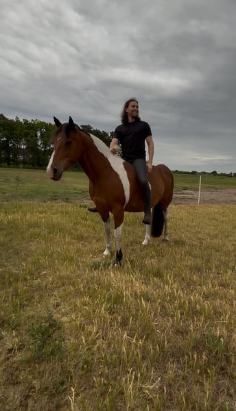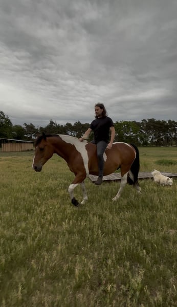 Tölting Theisenbörg nació el 02.08.2016 en Ribbesbüttel. Mide 152 cm y posee un documento de American Racking Horse de la RHBAA y, por supuesto, un pasaporte equino. Desde su nacimiento, ha sido el favorito de nuestra jefa y eso se nota en su comportamiento. Es simplemente una aparición y llama la atención de todos de inmediato. Galopa junto al coche, siempre llega primero y se queda cuando todos los demás ya se han ido. Theisenbörg es el caballo más dócil del mundo; si no fuera tan inapropiado, probablemente le gustaría vivir en la casa con su familia. Ya ha llevado a un jinete un par de veces. Sin embargo, no lo hemos entrenado para eso; él nos lleva con gusto porque le alegra que hagamos algo juntos y corre diligentemente detrás de los otros caballos. Sin duda, se convertirá en un maravilloso y valiente caballo de monta. Aún así, necesitaría ser entrenado, lo cual seguramente será sencillo dado su encantador, dispuesto y valiente carácter. Theisenbörg tiene mucho tölt y es muy estable. Hoy comenzamos a trabajar con él en la cuerda. Se comportó tranquilo y amable. Si desea montarlo para probar, le pedimos un poco de paciencia. Debido a nuestros procesos operativos, puede que no podamos montarlo hasta dentro de unas semanas. Nuestros caballos solo se venden en condiciones donde puedan moverse libremente y con otros caballos las 24 horas del día. Es realmente importante contar con suficiente espacio para galopar en el paddock incluso en invierno, suficientes lugares de alimentación para la cantidad de caballos planificados, compañía adecuada las 24 horas y un refugio que ofrezca lugares suaves para descansar y protección contra las inclemencias del tiempo en cualquier época del año. Además, es importante para nosotros que nuestros caballos sigan siendo desparasitados adecuadamente varias veces al año y que reciban la inmunización contra el tétanos. Cuando nos contacte, le preguntaremos por fotos de su instalación ecuestre para ver si las condiciones son adecuadas para cada caballo. Así nos aseguramos de que nuestros caballos sigan siendo compañeros amables, comprometidos y saludables para usted en el futuro. La venta sostenible de caballos es una cuestión que nos importa profundamente.