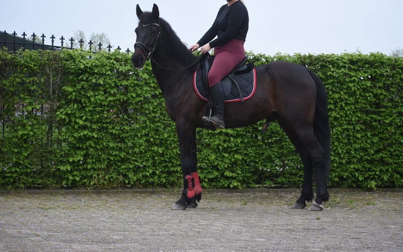 Lieve, prachtige, 11 jarige, zwartbruine ,betuigd en bereden ruin Howi, officieel gedoopt met de aparte naam: Howimeturmother is een schat van een paard. Hij is vroeger betuigd geweest en wordt bij ons met veel plezier dressuurmatig en recreatief gereden. Hij is meewerkend hier, zelfs een minder gevorderde ruiter kan met hem rijden. Hij heeft een heel lief karakter. Qua uiterlijk heeft Howi veel weg van een barokke Fries. We hebben hem 8 jaar geleden verkocht aan oudere mensen waar hij eens geschrokken is van vuurwerk wat vlak bij de stal werd afgeschoten. Nu bij ons heeft hij de rust weer teruggevonden , op stal en in de wei. Zelfs een beginnend kind heeft al weer op hem gereden . Hij is in het bezit van een paspoort met stamboom van From Above x Wall Street Banker. Howi is geboren 16-04-2014 en ca 161 m hoog. In bezit van een recent keuringsrapport incl. bloedafname. Prijs € 3950,- incl. merkzadel.