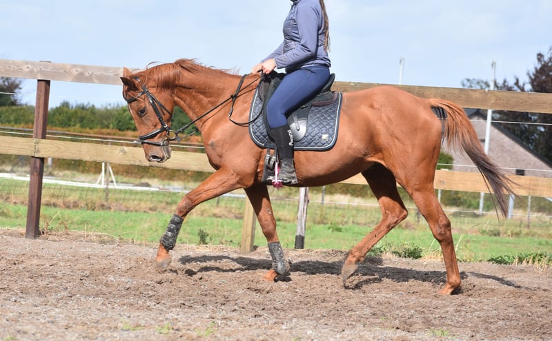 Oh ‘Herewego is de officiele doopnaam van deze ontzettend lieve ruin. Omdat ie zo lief is dat je hem wel op zou willen eten en hij zelf best wat meer koekjes mag om iets voller te zijn, noemen we hem Cookie. Cookie is vanaf het begin hier een schat van een paard. Zowel in de omgang als in de trailer, op straat , op stal en in de wei. Hij kan hier bereden worden door beginnende ruiters en loopt ruim genoeg om de gevorderde uitdaging te bieden. Ca 160 m hoog. Geen stalgebreken. Cookie heeft een volle afstamming van Medaaly x Masamba. Hij is geboren 18 april 2009. In bezit van een zeer recent keuringsrapport inclusief bloedafname waarbij hij is goedgekeurd. 4450,- incl merkzadel en dekje. Het reserveren van dit paardje is wellicht mogelijk, kijkt u even op onze website? Paard op afbetaling kopen Het is nu mogelijk je paard(je)op basis van deel termijnen te kopen bij Stal Doorstap. Voorwaarde is dat het paard de periode van financiering op het terrein van Stal Doorstap blijft. Uiteraard kun jij dan van de hele accommodatie gebruik maken met het paard. De kosten voor het paard komen voor je rekening, evenals de afbetaling. Het is niet mogelijk de deelbetalingen terug te ontvangen. Denk er dus wel goed over na.