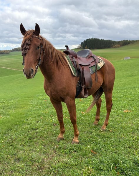 Traumhaftes Freizeitpony im Endmaß – brav, zuverlässig & vielseitig! Dieser bezaubernde Wallach ist ein echtes Herzenspferd! Mit seinen 4½ Jahren und ca. 150 cm Stockmaß steht er voll im Endmaß und begeistert mit einem wunderbaren Charakter: freundlich, ausgeglichen und stets angenehm im Umgang. Für sein Alter ist er bereits gut geritten und überzeugt mit seiner Rittigkeit, Lernfreude und Nervenstärke. Er ist fein an den Hilfen, angenehm zu sitzen und arbeitet motiviert mit ganz gleich, ob auf dem Reitplatz, im Gelände oder in neuer Umgebung. Dabei bleibt er stets ruhig, aufmerksam und verlässlich. Im Gelände geht er sowohl alleine als auch in der Gruppe absolut brav und übernimmt dort souverän die Rolle des Führpferdes. Er ist sowohl an den englischen als auch an den Westernsattel gewöhnt und zeigt sich mit beiden Varianten gleichermaßen brav. Aktuell ist er beschlagen und selbstverständlich unkompliziert beim Hufschmied. Trotz seiner tollen Ausbildung sollte er natürlich weiterhin altersgerecht gefördert werden, um seine positiven Anlagen weiter zu festigen. Mit seiner Lernfreude, seinem ausgeglichenen Wesen und seiner coolen Art bringt er dafür die besten Voraussetzungen mit. Wir können uns diesen Wallach hervorragend als zuverlässiges Familienpony oder als tollen Freizeitpartner für Jugendliche mit Reiterfahrung vorstellen ein treuer Begleiter für viele gemeinsame Jahre im Gelände, beim Reiten oder einfach zum Liebhaben. 👉 Bitte beachten: Für das Vorreiten, Probereiten oder sonstiges Ausprobieren des Pferdes erheben wir eine Gebühr von 30 €, zum Wohl des Pferdes. Bei einem Kauf am selben Tag wird dieser Betrag selbstverständlich mit dem Kaufpreis verrechnet.