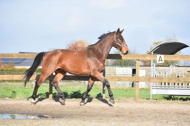 Straight from the breeder, we were allowed to acquire him together with his stablemate Valesco vd Melane. Meet Voltaire van de Melane, an impressive and elegant 4.5-year-old gelding approximately 1.75 m (17.1 hh), with an excellent pedigree: Querido VG x Concorde Z x Tresor D 12. A horse with a bright future, suitable for both sport (dressage + jumping) and recreation. Voltaire is beautifully built and exudes presence and suppleness. He is a friendly, cheerful, and positive horse. Under saddle, he demonstrates his natural balance and cooperative temperament. He seeks a good connection with the rider and is a pleasure to ride. In handling, he is strong but truly a sweetheart. Calm, affectionate, and always eager for attention. He is well-versed in traffic and trailer loading, both now and previously. Very social. Free from (stable) defects. Voltaire is in excellent health and moves with great cadence, balance, and space. He has been radiographically and clinically approved, including his legs, back, and neck. Price: €9,750 including a brand saddle and bridle, complete.