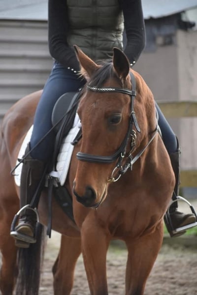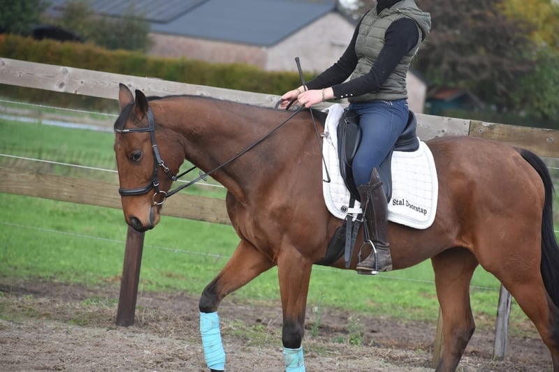 Knappe, vrolijke, 6 jarige ruin Hier is Yamas, een 6 -jarige ruin met de afstamming Anjaal x Creese. Met zijn sprekende bruine ogen en charmante uitstraling weet hij direct harten te veroveren. Hij heeft een mooi familiemaatje met zijn ca 158 m hoogte. Yamas is een paard met een fijn, nuchter karakter. Hij blijft hier rustig in nieuwe situaties en is niet snel onder de indruk van zijn omgeving. Daarbij is hij niet overdreven voorwaarts, wat zorgt voor een veilig en betrouwbaar gevoel in het zadel. Hij is in bezit van een keuringsrapport inclusief bloedafname, waarbij hij is goedgekeurd voor de sport met perfecte buigproeven! In de omgang, het verkeer, de trailer en in de kudde is Yamas hier nuchter en in de wei en op stal erg makkelijk. € 5450,- Incl. zadel en compleet hoofdstel