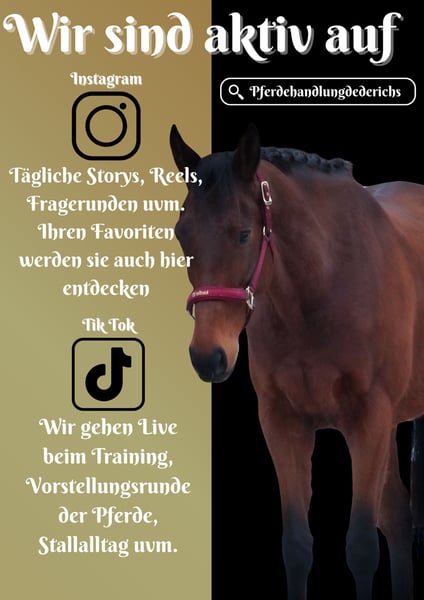 Rocket is a 2019-born gelding, approximately 16.0 hh, by Gale Force Ten out of Henry The Navigator. *Rocket* is a stylish and exceptionally sweet all-rounder. He is completely fearless and very laid-back. He rides calmly in the arena and in the terrain, and we can also see him as a good school horse. He has shown himself to be excellent in unfamiliar environments. Always up for fun. Very relaxed in the terrain and happy to jump. !!! BE SURE TO WATCH HIS VIDEO !!! Well-behaved, affectionate, and uncomplicated in handling. A current video can be found here in the listing or at the following link: https://www.youtube.com/watch?v=IXSHk83yGvI Horse dealer Dederichs – Your partner for horse purchasing Contact & Availability: Inquiries please exclusively by phone at 0173/9792139 Monday – Friday: 9:00 a.m. – 6:00 p.m. Saturday: 9:00 a.m. – 3:00 p.m. Sunday: Closed Follow us on social media! Experience our daily work with sale horses on Instagram, TikTok & Facebook under Pferdehandlung Dederichs Discount: Receive a 5%–10% discount when taking your new dream horse immediately Test riding & demonstrations: • Test ride: €30 per horse (up to 2 riders), amount credited upon purchase • Holidays: Test ride €50 • Demonstration by our trainers: €25 per horse (pre-riding, groundwork, etc.) Pre-purchase examination & transport: • Many of our horses already have a pre-purchase exam (AKU) • You are, of course, welcome to bring your own veterinarian • We can arrange an examination for you • We are also happy to assist with transport to your new home Additional sale horses: We have more horses available in our stable that are not yet listed online. If your dream horse is not yet featured, do not hesitate to contact us. Important notes: • Height information is estimated and not precisely measured • All descriptions are subjective assessments by the seller and do not constitute guaranteed properties