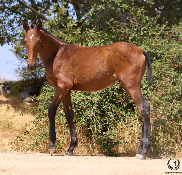 🐴 Giralda is a bay CDE filly with a crescent-shaped marking on her forehead 🌜. She is the sweetest and most affectionate of the crop and enjoys human contact. Born on 15 May, very tall, harmonious, with an ideal build for sport and riding. ♀️ Dam: SEVILLANA CCXI Bay PRE mare, 1.75 m, 100% Cárdenas, registered as a breeding mare with ANCADES. She stands out for her nobility, power, balance and superior movement, and is also confirmed as a riding mare. She transmits quality in everything. Giralda is her first foal. 🧬 Elite pedigree On the sire line appears Fuego de Cárdenas, a PRE legend and a key figure in classical dressage alongside Juan Manuel Muñoz Díaz, known as the “King of Hearts”. 🏅 Achievements of Fuego de Cárdenas: • Spanish National Champion (2008) • Olympic Games Beijing 2008 (6th) and London 2012 (10th – Diploma) • Historic Kür at the 2010 WEG in Kentucky • International CDI victories (Saumur, Wiesbaden) • Young Recommended and Qualified Breeding Stallion ANCCE Also in this line is Utrerano VII, one of the most influential stallions of modern PRE breeding and sire of Fuego de Cárdenas. 🏆 Milestones of Utrerano VII: • Qualified, Improving and Elite Breeding Stallion • Great transmitter of character, scope, strength and elegance • Sire of numerous international PRE horses • Essential genetic foundation of today’s sport PRE On the dam line appears LEGO, legendary stallion of the Yeguada Militar: • Qualified and Improving Breeding Stallion ANCCE ♂️ Sire: Gallo-Spirit (CDE) Recognised stallion, renowned for passing on beauty, nobility, refinement, ease of training and great willingness to work. 🩺 Health guaranteed Any veterinary examination accepted. Raised in freedom, socialised and well balanced within the herd. Dewormed in November. ✈️ National and international transport We work with the best professional equine transport companies. Quotation without obligation. 📙 Documentation: Official ANCADES Studbook / Main CDE Register. 📲 Contact: WhatsApp: +34 639 522 420 Instagram: @yeguadamontealegre 📸 Photography: @almarevisual