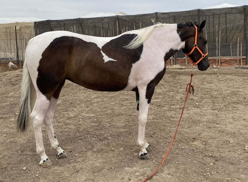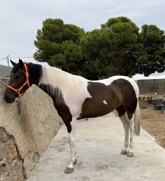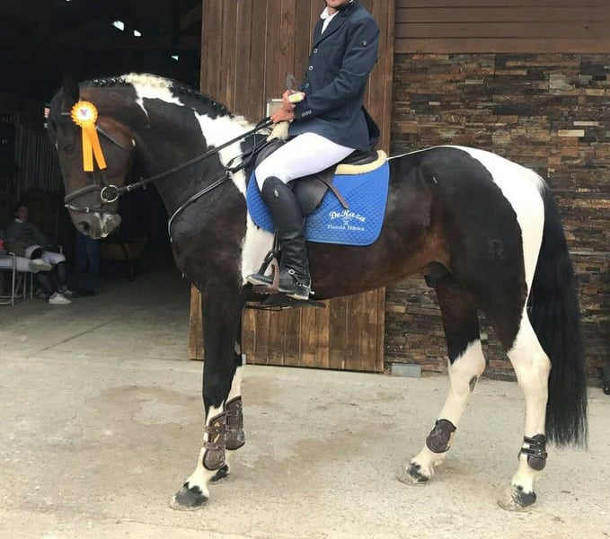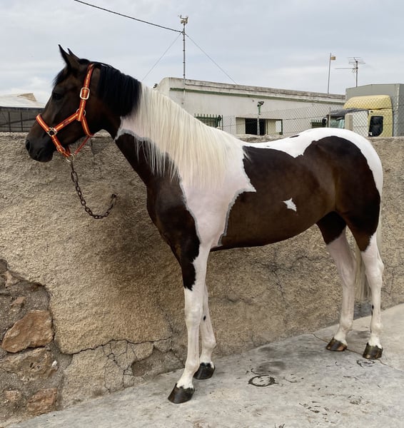 En venta potra pia, cerca de 3 años (Enero 2023) CDE inscrita en Ancades. Padre CDE capa pia con 1,72m, orígenes de salto ( está en las últimas fotos) , y madre Hannoveriana (hija de Sancisco y nieta de Sandro Hit- Londonderry) con 1,68 m. Se espera que su alzada final este alrededor de 1,70 m. Movimientos súperelásticos y con impulsión, perfecta para doma clásica o salto, tiene muchas cualidades. También, dada su capa, se puede utilizar para cría. Vacunas y desparasitaciones al día. Ubicada en Almería (España) Directa del ganadero, sin intermediarios, un solo propietario desde su nacimiento. Su madre tambien esta en venta, se puede hacer un Precio de lote. * se acepta cambio por PRE inscrito en Ancce, capa palomino o isabelo, alzada superior a 1,65 y montado sin manias ( si no, prefiero venta)
