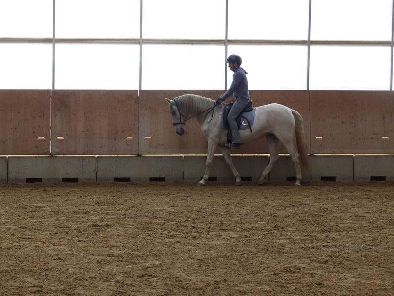 Verkauf PRE Stute ohne Abstammungsnachweis – Rappschimmel, Geburtsjahr 2017 Diese elegante PRE-Stute begeistert durch ihre ansprechende Erscheinung und ihr angenehmes Wesen. Mit einem Stockmaß von 155 cm und bereits Erfahrungen auf verschiedenen Veranstaltungen, ist Sie die perfekte Partnerin für den gehobenen Freizeitreiter. Wir können Sie uns ebenfalls gut in der Dressur, wie dem Working Equitation vorstellen. Sie ist im Jahr 2017 geboren und bringt somit noch viel Potenzial für die weitere Ausbildung mit. Sie hat ein gutes Go und ist rassentypisch sehr aufgeweckt und somit zum momentanen Ausbildungsstand kein Anfängerpferd. Bei Interesse und für weitere Informationen stehen wir gerne zur Verfügung, bitte rufen Sie uns an oder schreiben Sie uns eine Nachricht per Whats App und vereinbaren Sie ein unverbindliches Probereiten.