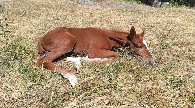 Wunderschöne, leuchtend kastanienfarbene Stutefohlen von Sarabi CS, eine Stute aus der Carrascal-Zucht in Sanchiricones, Tochter von Salinero Punta de Lanza. In ihrer Abstammung finden sich bekannte Vorfahren wie Sancisco oder Donerhall. Die Mutter von Sarabi ist Estoril, eine der herausragenden Carrascal-Stuten, Tochter des importierten Hengsts Espriwall, und sie ist die Halbschwester von El Villar, einem Pferd im Besitz von Alba Abollo, mit dem sie den dritten Platz in Europa belegte. Sarabi verfügt über einen beeindruckenden Schritt, viel Kraft in den Hüften, die Füße treten bei jedem Schritt deutlich unter den Körper, dazu ein schwebender, rhythmischer Trab mit viel Takt und einem freundlichen, aufgeschlossenen Wesen. Viele ihrer positiven Eigenschaften sind serienmäßig vorhanden – das ist kein Zufall, sondern das Ergebnis über 50 Jahre sorgfältiger Zucht und Auswahl bei Carrascal. 🧡🤍🧡 Im Foto zusammen mit ihrer 5 Tage alten Fohlen, Tochter von Peru's Sansaryno (Vivaldi-Linie).