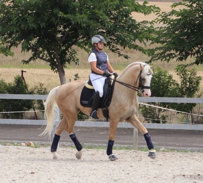 Très bel étalon Palomino de 9 ans, avec un niveau St. George confirmé et avec tous les exercices du Grand Prix. C'est un cheval amusant et très noble, aussi bien dans l'arène qu'à l'extérieur.
