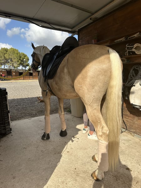 Precioso caballo castrado palomino de 11 años de edad, con nivel San Jorge confirmado y con todos los ejercicios de Gran Premio. Es un caballo divertido y muy noble, tanto en pista como en el exterior. Radiografías actuales. Más información +34 626210161 Alba