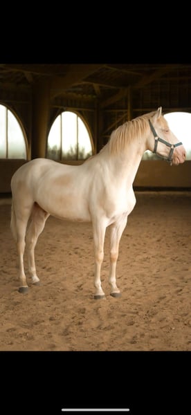 Ich biete ein sehr hübsches, junges Pferd im Alter von 2,5 Jahren zum Verkauf an. Es ist 1,49 m groß. Das Pferd ist sensibel, aber äußerst freundlich und besitzt einen neugierigen Geist. Es hat noch viel zu lernen und eignet sich perfekt für jemanden, der eine echte Vertrauensbasis aufbauen und das Pferd in seinem eigenen Tempo formen möchte. Seine Stärken: - Eine strahlende, cremefarbene Fellfarbe - Grüne Augen - Sehr schöne, natürliche und elegante Bewegungen - Eine beeindruckende Präsenz, ein harmonisch gebautes und gut proportioniertes Pferd Dieses junge Pferd besitzt echtes Potenzial für die Zukunft, sei es für den Freizeitbereich, Ausritte oder ein späteres Training, je nach Entwicklung. Eine schöne Gelegenheit für einen ruhigen, geduldigen Reiter, der einen Partner aufbauen möchte.
