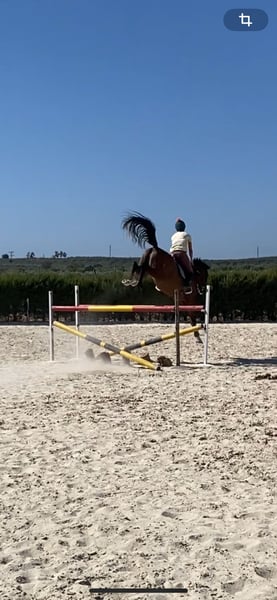 **Sales Advertisement: Spanish Sport Horse** For sale is a beautiful, talented gelding from Spain. **Features:** - **Breed:** Spanish Sport Horse - **Gender:** Gelding - **Year of Birth:** 2017 - **Color:** Brown - **Height:** 161 cm This impressive gelding stands out with his excellent jumping talent. He is suitable for both experienced riders and ambitious beginners who enjoy jumping. With his friendly nature and willingness to learn, he is an ideal partner for sporting challenges and shared experiences. He has already achieved initial successes in jumping and shows great potential for further progress. His training is promising, and he is ready to move to new hands to further develop his skills. If you are interested or need more information, please feel free to contact me. Viewings and trial rides are possible by arrangement. Don't miss this opportunity to find such a talented and loving companion!