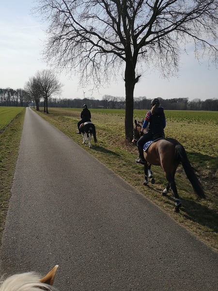 Ik verkoop mijn 8-jarige ruin Novato. Novato had helaas in september 2025 een hoefzweer (röntgenfoto uit oktober aanwezig). Helaas heb ik mezelf toen in november verwond. Sinds half februari wordt Novato weer gereden en in beweging gebracht. Daarom wordt hij nog als ongetraind en aanzienlijk onder de marktwaarde aangeboden. Hij is door mij voorzichtig opgeleid: - Schofthoogte ongeveer 1,63 m - E-licentie - Aangedreven met één- en tweespannen (recreatief) - Kent regelmatige buitenritten (zowel alleen als in gezelschap met een tweede paard) - Beheerst ook springen (buiten en rijbaan) - Absoluut smid- en laadvaardig - Volledig brave dierenarts- en osteopathiebezoeken - Kindervriendelijk - Hij beschikt over Spaanse papieren - Tetanus- en griepvaccinaties up-to-date - Zeer mensgericht Novato is in oktober 2025 door een paardenorthopedist behandeld. Momenteel staat hij van ongeveer 6 uur ’s ochtends tot 18 uur ’s avonds samen met een Shetlander op de paddock. ’s Nachts staan ze allemaal in de stal. Een groot deel van zijn toebehoren (hoefbeschermers, bit, zadelkast, dekens, rijtuiguitrusting, zadelschabracken, longeeraccessoires, etc.) kan tegen een meerprijs worden overgenomen. We zoeken een persoon met hart, paardenverstand en plezier in de omgang met een jong paard, die deze lieve ruin verder wil ontwikkelen. Meer informatie in een persoonlijk gesprek ter plaatse. Sinds half februari wordt Novato weer getraind en in beweging gebracht.