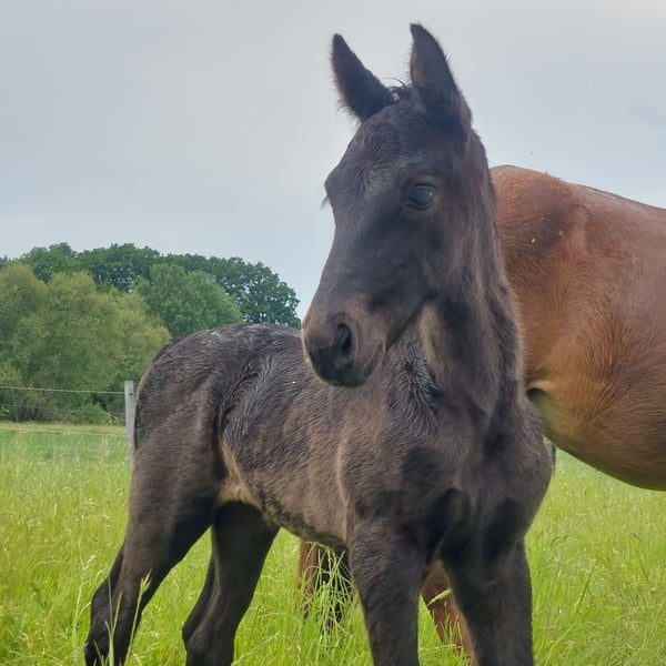 Verkaufe elegante Tennessee Walking Horse Stute Zum Verkauf steht eine wunderschöne Tennessee Walking Horse Stute, geboren im Jahr 2024. Sie ist ein beeindruckender Rappe mit einem Stockmaß von 158 cm. Twhbea-Papiere und Equidenpass vorhanden. Geimpft und regelm. entwurmt. Sie kennt das Fohlen ABC, führen, putzen, waschen, Hudschmied, verladen werden und schon ein wenig Handpferdetraining. Diese junge und vielversprechende Stute eignet sich hervorragend für Reiter, die die besonderen Gangarten des Tennessee Walking Horse schätzen. Sie ist gesund, gut erzogen und zeigt ein freundliches Wesen. Bei Interesse oder weiteren Fragen stehe ich Ihnen gerne zur Verfügung. Besichtigung und Probereiten der Eltern nach Vereinbarung möglich.