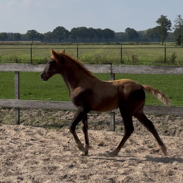 We are looking for the perfect new home for Shelby. Shelby is a Tennessee Walking Horse, an American gaited horse with very comfortable gaits such as the flatwalk and running walk. Shelby’s registered name is Call Me Copper Coin, and she is a very friendly filly with a beautiful dark chestnut color. Shelby was born on August 1, 2025, has TWHBEA papers, and a horse passport. Father: Yahoo’s Solid Rock Mother: They Call Me Chasey (2023 European Rail Grand Champion 3-gait) Location: North Brabant