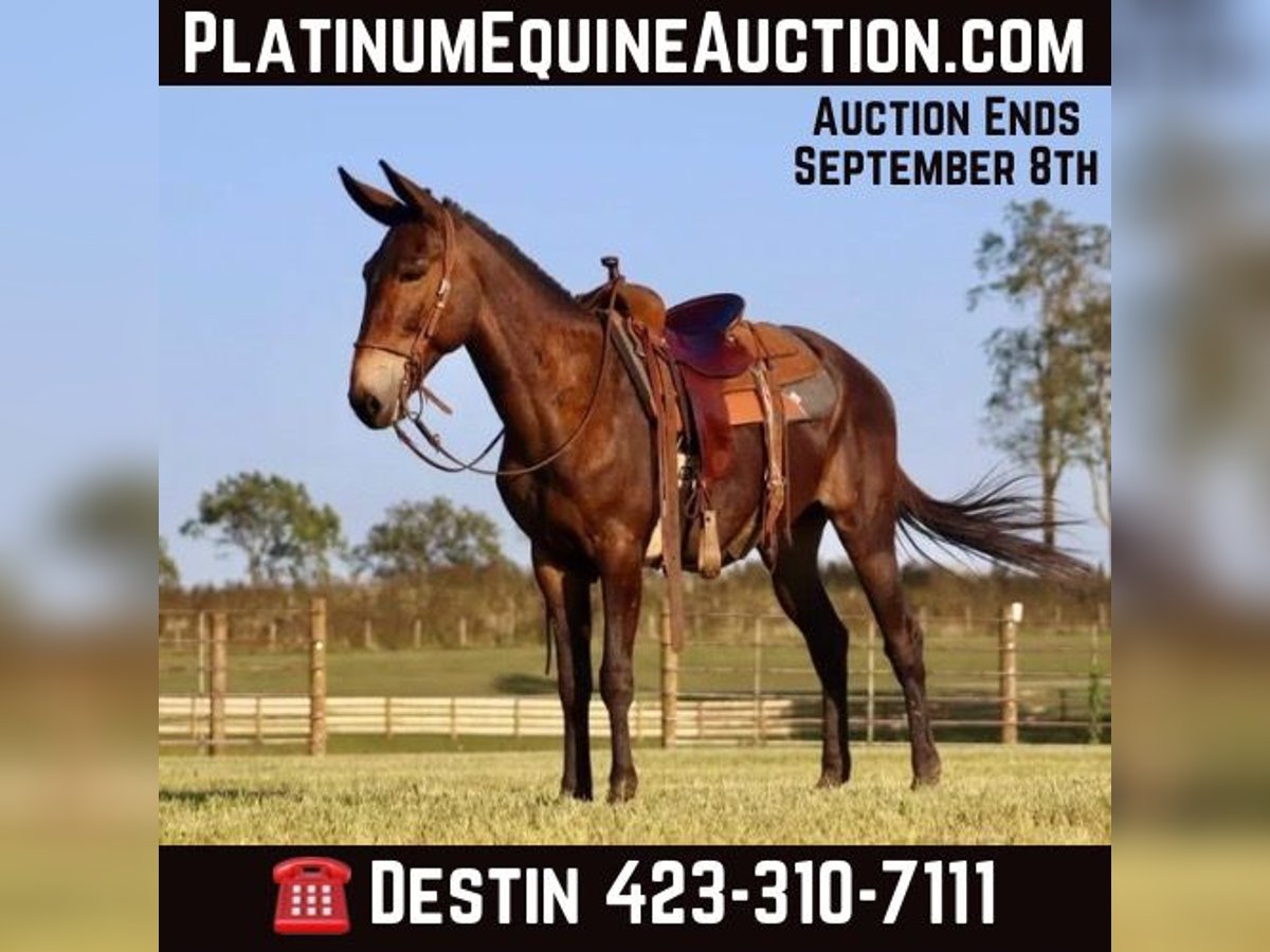 ONLINE AUCTION Place your bids at www.PlatinumEquineAuction.com Starting Bid $3500 Auction ends September 8th, 2024 Need a new saddle? Check out White Rock Saddles on our website or Facebook! Frankie is an 11 year old, 15 hand gaited John mule. If you are a trail blazing, tough trail, all day type of rider, you will love Frankie! We have had so much fun with Frankie on the trails. If you point his nose, he is sure to go and make you feel safe doing it! He is extremely brave, but also careful. He knows how to really rock back and slide down steep banks and hills. Give him his head and he will crawl back up them too. Crosses creeks. Goes through brush. He rides out alone or with the large group. He has a consistent ground covering gear at 8 mph. He’s been in the west and does well in that climate. We’ve taken him to the county fair shows all summer in the gaited mule classes and he has placed well. Frankie is traffic safe. We’ve jumped him up onto the flatbed trailers and driven him around. He jumps obstacles if you like. You name it, he is game for it! For more information, call Brookside Horse Sales Destin 423-310-7111. ONLINE AUCTION Place your bids at www.PlatinumEquineAuction.com Starting Bid $3500 Auction ends September 8th, 2024 Need a new saddle? Check out White Rock Saddles on our website or Facebook!
