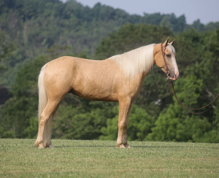 ONLINE AUCTION Place your bids at www.PlatinumEquineAuction.com Starting Bid $3500 Auction ends July 20th 2025 Need a new saddle? Check out White Rock Saddles on our website or Facebook Sooner is an eye-catching stout built, Golden Palomino gelding with a blaze face! He is a Tennessee Walking Horse standing around 14.3hh and he is 4 years old. Sooner has all the experience anyone could ask for but is young enough to do it all again! From field trials to coon hunting at night to just cruising the trails, he can handle it all! Sooner is a super fun horse to ride as he glides along effortless! He has that true 4-beat gait that is smooth for any rider at all speeds. He has been ridden in several states, from Tennessee to Indiana. He has seen everything imaginable and handles everything in stride! He has been exposed to all kinds of wildlife, such as deer or turkey, or other animals like cows or dogs, and will go anywhere that he is asked to. He has ridden many miles in the mountains of Eastern Kentucky and encountered every obstacle possible on the trail. He will go up or down even the steepest slopes, across deep creeks, over downed trees, and all rough terrain while still being sure-footed. He has been ridden in traffic and is very traffic-safe around cars, semis, logs, and dump trucks. If you are looking to blaze a trail but want to do it safely and steadily… Sooner is the horse for you! Feel free to call Trevor Patrick 606-516-8069 with any questions, to make a Buy It Now Offer or to schedule a time to come see him in person. ONLINE AUCTION Place your bids at www.PlatinumEquineAuction.com Starting Bid $3500 Auction ends July 20th 2025 Need a new saddle? Check out White Rock Saddles on our website or Facebook