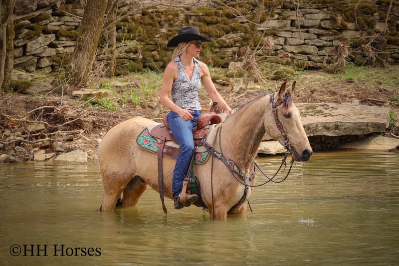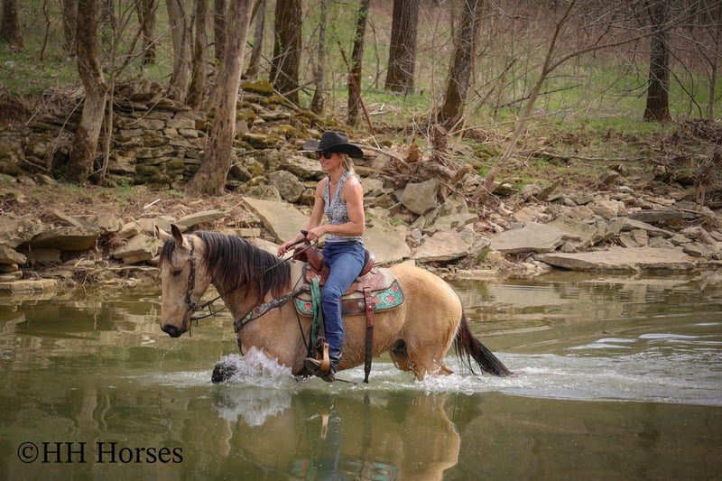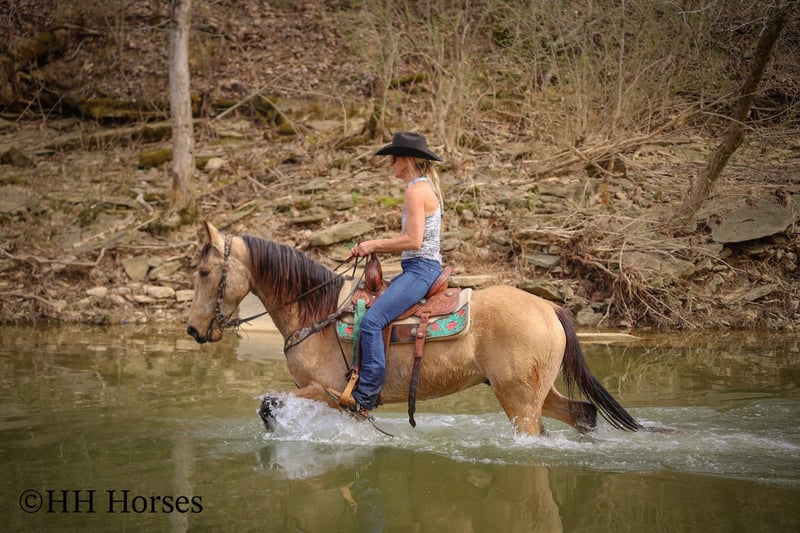 ONLINE AUCTION Place your bids at www.PlatinumEquineAuction.com Starting Bid $3500 Auction ends April 13th, 2025 Need a new saddle? Check out White Rock Saddles on our website or Facebook! This is “VIA’S SPIRIT OF THE CHIEF”, a registered BUCKSKIN TENNESSEE WALKING HORSE GELDING that is well broke and extra fancy. This gelding is naturally gaited and super smooth. He is 7 years old and stands 15 hands tall. He has been through the deep water, up and down in the mountains, and through the timber. He is good to work around and stands to tack, mount, and groom. He will walk out nicely on a loose rein, has a smooth gait, and will canter when asked to. He is easy to stop and easy to turn. He is obedient, well mannered, and he aims to please. If I was going to have a gaited horse to keep to ride, he would be the one. He has color, style, build, and he is sure footed through the rocky stream beds. He is brave and confident riding out alone. This gelding will also ride in a group and doesn’t care if he is in the back or the front. He is fine with dogs, tractors, and side by sides. He is a super cool registered gelding with color, ride, style, and ability. If you have any questions or would like to make a Buy It Now Offer contact HH Horses Erin 304-238-4155 Located in Flemingsburg, KY. ONLINE AUCTION Place your bids at www.PlatinumEquineAuction.com Starting Bid $3500 Auction ends April 13th, 2025 Need a new saddle? Check out White Rock Saddles on our website or Facebook!