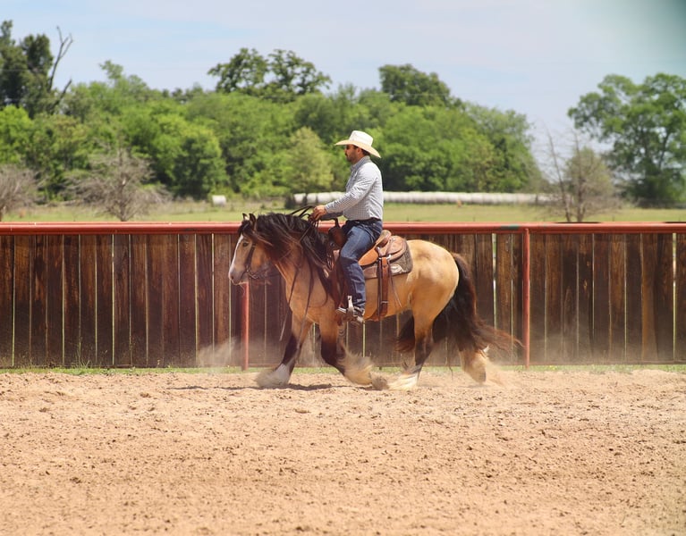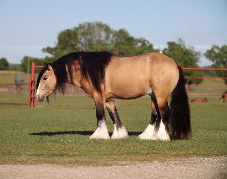 Frosted Flake, 5 Jahre alt, 1,65 m großer, buckskinfarbener Gypsy Vanner Hengst