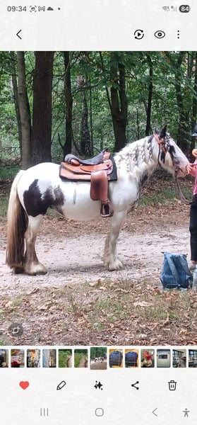 Wir verkaufen unsere Tinkerstute Sie ist vor 7 Jahren aus Irland zu uns gekommen und wir trennen uns nur von ihr, wenn Alles passt. Sie trägt bis max 70 Kilo , ist knapp 140 cm groß. Lässt sich gut verladen , ist brav beim Schmied, geimpft, entwurmt , Zahnarzt 2025, Osteo regelmäßige Kontrolle. Sie lässt sich gut pflegen, wichtig bei diese Mähne , Schweif und Behang Sie ist englisch ausgebildet und hat Western Grundausbildung. Bei uns wied sie aktuell mit Westernsattel geritten Sie ist Nervenstark, geht Halle, Platz und Gelände Weitere Infos gerne auf Anfrage