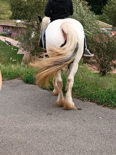 I am looking for a kind person for Lia. Unfortunately, I have too little time for her and cannot give her the attention she deserves. Lia is very people-oriented, willing, and reliable; she also enjoys going out into the countryside with children. She is barefoot, healthy, and robust, but requires good, low-dust hay, as she tends to cough otherwise. For this reason, I am selling her well below her value. I would like her to have a paddock with year-round access to pasture. Her equipment can be purchased upon request.