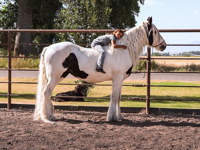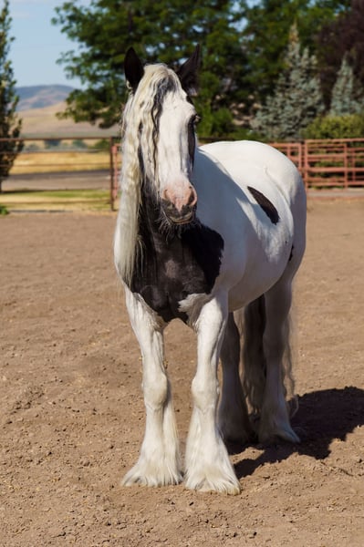 ⚜ The HERITAGE Classic ⚜ Happening now thru MONDAY | AUGUST 11th - Available EXCLUSIVELY on HorseBid's website! For more details and to register visit: www.Horsebid.com CONSIGNOR CONTACT: Carmella S 480-352-0710 LOCATION: Smithfield, UT BREED: Gypsy Vanner REGISTERED: Yes REGISTERED NAME: GMR jadis COLOR: Piebald HEIGHT: 15.2 AGE: 19 GENDER: Mare JADIS: This beautiful piebald REGISTERED GYPSY VANNER mare is a 2006 model, don’t let her age fool you! With her stocky, athletic Gypsy build, at 15.2 h, thick bone size and booty to spare, she can carry any size of rider! She has a flowing mane and tail with beautiful feather. Just some of the experiences Jadis has had In her past, she has had a foal, she is no stranger to having a rope swung off her, while moving cattle, she does have it in her to be cowy. She has a good stop, will side pass, lopes, backs it up. She has spent the good part of her life traveling down trails. Walks out confident at the front of a herd or will fall in line and follow. She has plenty of energy to get a job done or can do a extended trail ride without needing to pedal her. She enjoys a good ride with her person. She will go alone or with a group with no issues, not buddy sour!. She has been ridden down the street to the Farmers Market, exposed to people, flags, cars ,banners and such. She has seen most things and is comfortable with the vast majority of what “town” has to offer. Jadis has a in-your -pocket sweet personality and she loves the one on one attention anyone gives her ,she deserves her person! Rather you want to go down trails, lead line, 4H, raising babies, or whatever you desire, Jadis is up for it! Jadis is a easy keeper, maintains her weight well. She is easy to catch, comes right to you at the gate, she loads, bathes, grooms, easy to tack up, picks her feet up and fly mask easy peasy. She is healthy, cleaned legged. Jadis has been kept wormed, vaccinated, recently had her teeth done. She has hard as nail hooves, we have kept her fronts shod. Jadis is waiting for her next person to do all the things! Are you the one????? PPE is welcomed at buyers expense. She is located in Smithfield, Utah Contact 480-352-0710