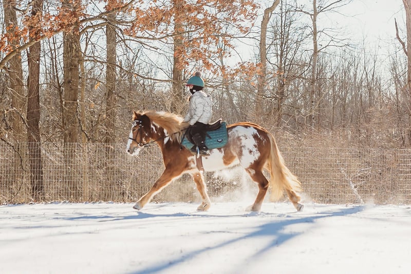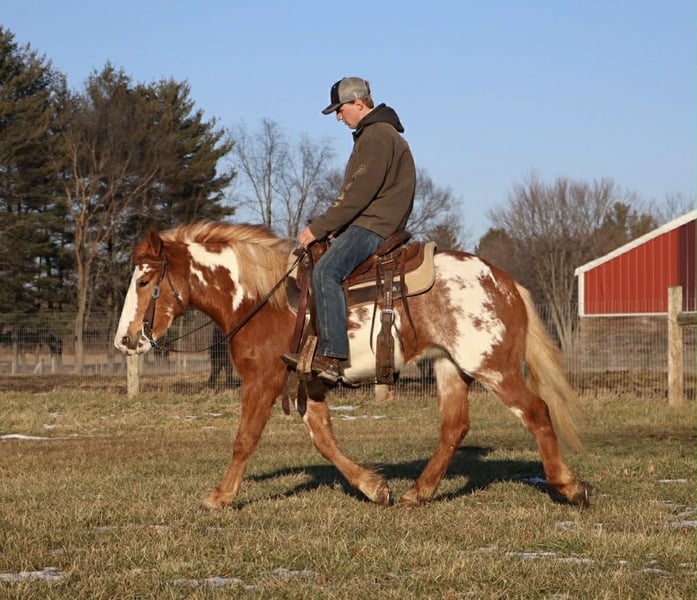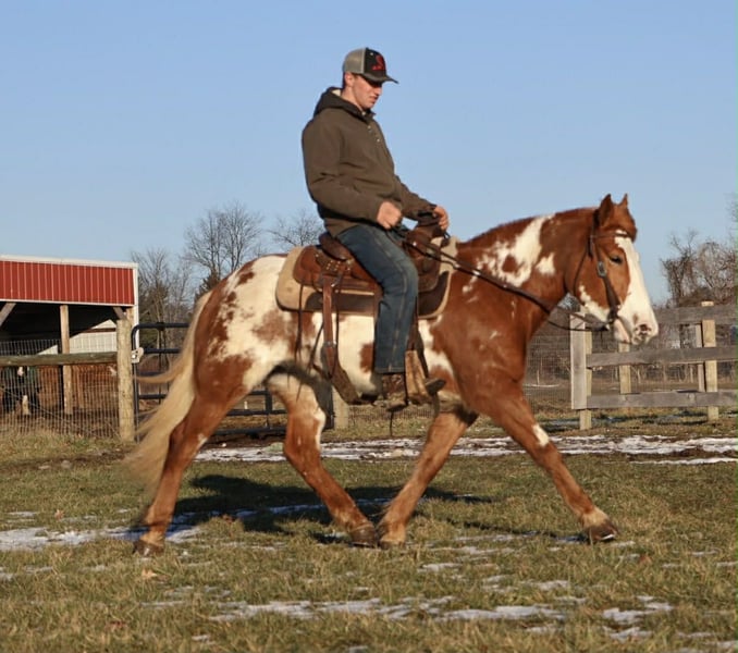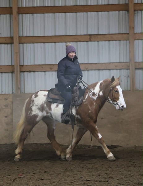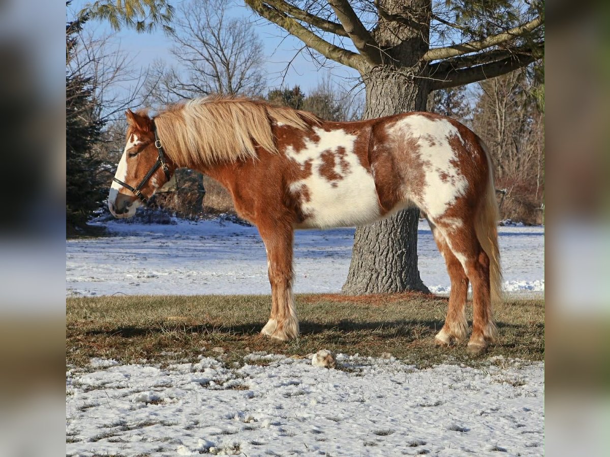 "AVAILABLE ON ONLINE HORSE AUCTION AT www DOT PlatinumEquineAuction DOT com BIDDING OPEN NOW thru SUNDAY | MARCH 1ST! *Final price will be determined on auction site* CONSIGNOR CONTACT INFO: Ellesse Schwartz 248-390-6831 LOCATION: Howell, MI Get ready for your perfect match! This sweetheart is hands down one of the most beautiful gypsy vanner Haflinger crosses you will meet. This little lady stands 14.1hh at 4 years old. She’s got a stunning chestnut and white overo coloring covering her coat. Light feathering on all 4 legs, the most stunning thick strawberry mane and tail. Her conformation is very classic and correct. Splash has a petite and pretty face with a kind and expressive eye. Splash is full of personality in a good way. She knows all the liberty work and will lay down on command! She's carried the flag, steeps over tarps, bridges and plays with the giant ball! She can say yes and no and side pass right over to the mounting block! This little lady is always happy to greet you and will stand for hours for grooming. She has had 60 days in harness and has driven across the countryside of Michigan. Under-saddle this girl is a blast!! She walk, trots, and canters with comfort and ease. She comes equipped with effortless transitions both upward and down. She stops on a dime and backs up like a pro. Splash moves very well off of seat and leg pressure as well. She has been working in the arena schooling 1st level dressage moves and works with ease and elegance. She’s a smart girl, once you teach her something she gets it’s and comes out the next day aiming to please. We have been having a blast jumping her. Splash is jumping small courses in beautiful form and she’s not one to shy from flowers or fill. She holds a nice canter around a course and jumps in great form. Splash has spent many hours out on the trails and she loves an adventure. She will ride out alone or in a group. She comes equipped with an effortless next rein. She’s not phased by cracking brush, thick woods, dirt road traffic, wildlife, steep hills or water. With that being said we think she would be super fun to take out on a hunter pace, or even some lower level eventing. Splash is a very special girl. She has been ridden independently by kids as young as 5 and adults in their 70s her comfortable gaits and steady pace make her a favorite among all. She’s got the movement, mind, and looks to go almost any direction you want to take her! Splash lives in Howell, MI. Please call or text Ellesse Schwartz 248-390-6831for more info.