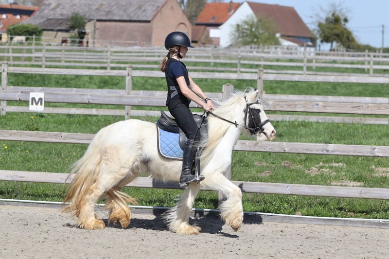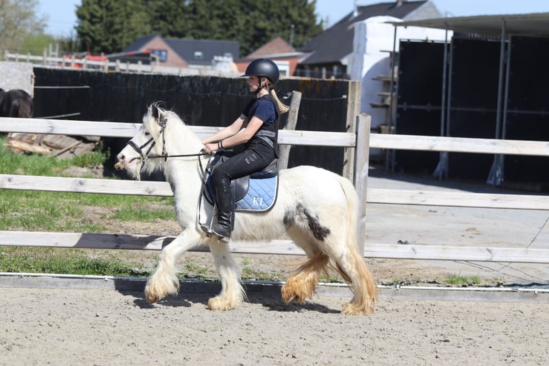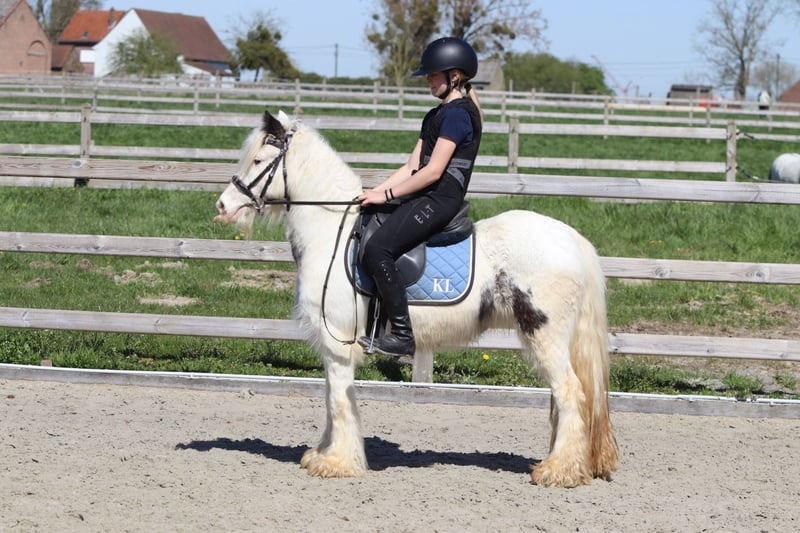 🌸🐴 Tinker poney Molly, adorable et au caractère doux ! 🐴🌸 Faites la connaissance de Molly 💕 Une Tinker poney très spéciale avec un magnifique œil bleu en forme de maanoog 😍✨ ✨ 5 ans ✨ Jument ✨ Environ 1,22 m Molly est bien dressée en dressage classique 🐎 Elle aime aussi sauter et se montre très à l’aise en balade en extérieur, seule ou en groupe 🌳🐴 Elle a une tête extrêmement mignonne 🥰 Elle s’entend très bien avec d’autres poneys 🐴💛 Et… elle peut rester des heures immobile pour se faire chouchouter et laver 🧼🪮💖 En résumé : une véritable petite chérie et une ponette câline ! 🧸🐴 📞 Plus d’infos ? WhatsApp ou téléphone : 0032475682243 🎥 Pour des vidéos : demandez notre site internet