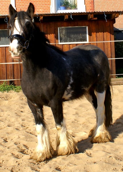 Knuffige black blagdon Tinkerstute, auffällige Optik mit schönem Exterieur, brav angeritten, hat Freude an Freispringen und springt auch mit toller Art, kennt Hunde und Traktoren, gibt brav Hufe, keine Rehe oder Mauke, artig im Umgang und unter dem Sattel