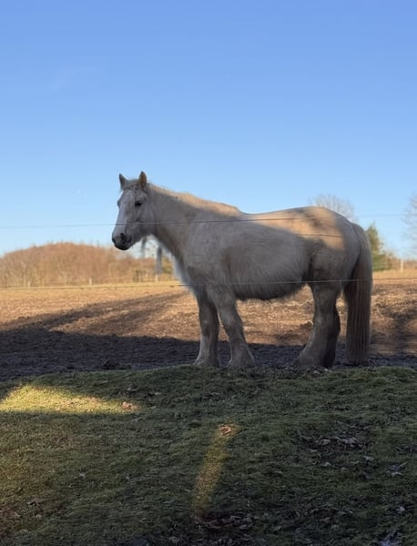 Tinkerstute, 4 Jahre, wird im April 5 Stockmaß aktuell ca. 140 cm mit holländischem Pass. Aus persönlichen Gründen sucht unsere Tinkerstute ein passendes neues Zuhause. • aktuell ca. 140 cm (noch im Wachstum) • kräftiger, kompakter Typ • Kennt Offenstall und 24/7 Weidehaltung, sowie nachts Box tagsüber draußen • regelmäßig geimpft und entwurmt Osteopath war im Januar erst da. Sie kennt: • Longieren und Doppellonge(Roundpen & Platz) • Gelassenheitsarbeit • Spaziergänge im Gelände • Platzarbeit • Kutschenausbildung (1- & 2-spännig) Wurde laut Vorbesitzerin schon im Abteilungsreitunterricht eingesetzt. Sie ist aufmerksam, intelligent und arbeitet fein mit, wenn sie klar geführt wird. Im Gelände zeigt sie sich grundsätzlich gut händelbar. Sie ist kein Anfänger oder Kinderpferd. Obwohl sie von der Vorbesitzerin ( laut ihrer Aussage) als Therapiepferd ausgebildet und auch einsetzt wurde, sehe ich sie in dem Bereich aktuell nicht. Sie zeigte bei mir in zwei Situationen Abwehrverhalten im Handling (insbesondere im Bereich Hinterhand sowie beim Anlegen von Ausrüstung) und benötigt daher einen ruhigen, erfahrenen und konsequenten Menschen. Hierzu möchte ich unbedingt noch erwähnen, dass sie einen ganz tollen und ruhigen Grundcharakter hat. Unser Trainer hat sie aktuell 1x die Woche im Training vom Boden aus und zur weiteren Desensibilisierung. Ein Probereiten ist aktuell aufgrund fehlenden Equipments nicht möglich. Spazieren gehen, Longieren und Kennenlernen sind selbstverständlich möglich. Sie wird ausschließlich an erfahrene Menschen verkauft, die den Umgang mit einem Pferd mit Ruhe und Geduld bevorzugen.