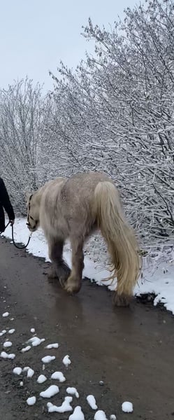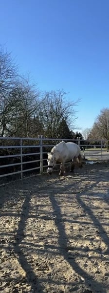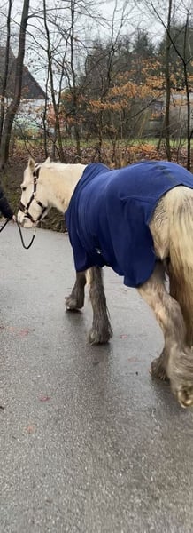 Tinkerstute, wird im April 5 Jahre Stockmaß aktuell ca. 140 cm mit holländischem Pass. Aus persönlichen Gründen sucht unsere Tinkerstute ein passendes neues Zuhause. • aktuell ca. 140 cm (noch im Wachstum) • kräftiger, kompakter Typ • Kennt Offenstall und 24/7 Weidehaltung, sowie nachts Box tagsüber draußen • regelmäßig geimpft und entwurmt Osteopath war im Januar erst da. Sie kennt: • Longieren und Doppellonge(Roundpen & Platz) • Gelassenheitsarbeit • Spaziergänge im Gelände • Platzarbeit • Kutschenausbildung (1- & 2-spännig) Wurde laut Vorbesitzerin schon im Abteilungsreitunterricht eingesetzt. Sie ist absolut Brav beim Hufschmied. Sie ist aufmerksam, intelligent und arbeitet fein mit, wenn sie klar geführt wird. Im Gelände zeigt sie sich grundsätzlich gut händelbar. Sie ist kein Anfänger oder Kinderpferd. Obwohl sie von der Vorbesitzerin ( laut ihrer Aussage) als Therapiepferd ausgebildet und auch einsetzt wurde, sehe ich sie in dem Bereich aktuell nicht. Sie zeigte bei mir in zwei Situationen Abwehrverhalten im Handling (insbesondere im Bereich Hinterhand sowie beim Anlegen von Ausrüstung) und benötigt daher einen ruhigen, erfahrenen und konsequenten Menschen. Hierzu möchte ich unbedingt noch erwähnen, dass sie einen ganz tollen und ruhigen Grundcharakter hat. Unser Trainer hat sie regelmäßig im Training, erstmal vom Boden aus und zur weiteren Desensibilisierung, das macht sie ganz toll mit. Ein Probereiten ist aktuell aufgrund fehlenden Equipments nicht möglich. Spazieren gehen, Longieren und Kennenlernen sind selbstverständlich möglich. Sie wird ausschließlich an erfahrene Menschen verkauft, die den Umgang mit einem Pferd mit Ruhe und Geduld bevorzugen, da sie auch auf Grund ihres Alters noch lernen muss. Anfragen bitte nur bei ernsthaftem Interesse, mit ein paar Infos über die Pferdeerfahrung, eventuell zukünftige Haltung und ihrem Namen. Alles andere wird nicht beantwortet.