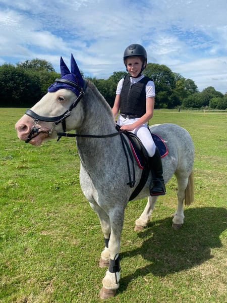 Elsa 7 years 13.1 hh Mare blue blagdon, gypsy mini vanner This pony has been a saint, this is a very sad sale, she is so good in all ways. She has had many different levels of rider and looks after every single one. Ridden by novice children from age 8-14, novice adults max 10st up to 5’3 and experienced riders. She can step it up a gear or go for a quiet plod. She is a nice forward ride without being silly On the ground she is an angel, easy to catch, load, change rugs, groom, shoe, bath, tie. Tack up and go. She will stand for hours to be groomed or at a show and go to sleep until her class. Loads with no trouble at all. Is a real sweetie, to handle leads nicely and has good manners. You can plait her, clip her do vaults and round the worlds and is not spooky at all. She can stress if left alone in a field but has turned out alone and does settle . In the school She loves to jump has jumped 80/90 and gives her all. Loves jumping at home and will do grid work and chase me Charlie’s, she regularly jumps 60/ 70 with ease. Good transitions and breaks, doesn’t buck rear or bolt. If you take a fall she will wait with you. She can be strong on a turn when jumping bigger heights, but is just a bit of schooling she needs, if you rely on your leg and open your hand she never misses. Walk trot and canter and would easily do pony club. Hack Brilliant to hack in company, not spooky, will tackle bridges, bins, bikes, buses, Lorrie’s, canter in open fields without fizzing up and getting strong, walk over cattle grids, do gates and water. She needs a forward thinking rider to hack alone, or she will turn about, but just circling she will turn back easily enough, never says no, never nasty a really nice natured pony. My children have lost interest and I was keeping her on for a loaner who has now moved on to bigger horses. Would be perfect for RDA or pony club, or any novice coming off riding school horses. She’s well built and bare foot, ridden in a Waterford as she can grab the bit but hasn’t done it since using this bit, she’s also got a sensitive mouth so no need to hang off her, never took a lame day in the 2 years I’ve had her. Too perfect to waste in my field, and should be loved and enjoyed by some little person or adult. Comes with fitted tack and rugs Up to date with teeth and vaccinations Microchipped and passported
