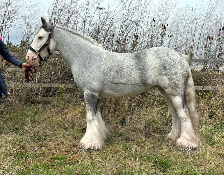 Elsa 7 Jahre alt 1,33 m Stockmaß Stute Blue Blagdon, Gypsy Mini Vanner Dieses Pony ist ein wahrer Schatz, der Verkauf ist sehr traurig, denn sie ist in jeder Hinsicht äußerst liebenswert. Sie hat bereits mit Reitern unterschiedlicher Erfahrungsstufen gearbeitet und kümmert sich um jeden einzelnen. Geritten wurde sie von Anfängerkindern im Alter von 8 bis 14 Jahren, von unerfahrenen Erwachsenen bis zu 45 kg und 1,60 m groß sowie von erfahrenen Reitern. Sie kann ein bisschen mehr Tempo machen oder auch gemütlich im Schritt unterwegs sein. Sie ist ein angenehmer, vorwärts orientierter Reitpartner, ohne dabei unruhig zu werden. Am Boden ist sie ein Engel, leicht zu fangen, verladen, Decken wechseln, putzen, beschlagen, baden, anbinden. Satteln und losreiten – sie bleibt stundenlang ruhig beim Putzen oder auf Turnieren und schläft bis zu ihrer Klasse. Das Verladen klappt problemlos. Sie ist sehr lieb im Umgang, führt gut an der Leine und hat vorbildliche Manieren. Man kann sie flechten, sie clippen, macht mit ihr Vaulting-Übungen und Weltumrundungen – sie ist überhaupt nicht schreckhaft. Sie kann stressen, wenn sie alleine auf der Weide steht, hat aber auch schon alleine ausgetrieben und entspannt sich dann. Im Reitunterricht Sie liebt Springen, hat 80/90 cm überwunden und gibt stets ihr Bestes. Sie springt gern zuhause, macht Gitterarbeit und folgt mir bei den Charlys. Regelmäßig springt sie mühelos 60/70 cm. Sie macht gute Übergänge, bleibt ruhig beim Abreiten, buckelt, reitet nicht durch, steigt nicht durch. Wenn sie mal stürzt, wartet sie geduldig. Sie kann bei größeren Sprüngen auf der Bahn auf der Hand etwas stark werden, das ist aber nur eine Sache des Trainings. Wenn man mit den Beinen arbeitet und die Hand öffnet, verfehlt sie nie den Sprung. Sie geht Schritt, Trab und Galopp und wäre auch für den Pony-Club geeignet. Ausritt Sie ist im Gesellschaftsritt brav, nicht schreckhaft, überwindet Brücken, Mülleimer, Fahrräder, Busse, LKWs, Tore und Wasser. Im freien Galopp auf den Feldern wird sie nicht unruhig oder zu stark. Über Cattle Grids laufen, Tore öffnen, Wasser durchqueren – alles kein Problem. Für alleine ausreiten braucht sie einen vorausschauenden Reiter, da sie sonst wenden möchte, aber im Kreisreiten kehrt sie problemlos um. Sie sagt nie nein, ist nie böse – ein wirklich liebenswertes Pony mit großem Charakter. Meine Kinder haben das Interesse verloren, und ich hatte sie für eine Leihpferd gesucht, die jetzt auf größere Pferde umgestiegen ist. Sie wäre perfekt für die RDA, den Pony-Club oder für unerfahrene Reiter, die vom Schulpony kommen. Sie ist gut gebaut, barhuf, wurde mit einem Waterford-Gebiss geritten, da sie das Gebiss manchmal packt, aber seitdem sie dieses benutzt, hat sie nie einen lahmen Tag gehabt. Zu schade, um in meinem Paddock zu stehen – sie sollte von einem kleinen Menschen oder Erwachsenen geliebt und genossen werden. Kommt mit passendem Sattelzeug und Decken Aktuell entwurmt, zahnärztlich behandelt und geimpft Mikrochip und Pass vorhanden