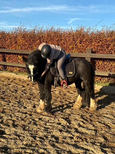 Zum Verkauf steht eine etwa 137cm große, 7 Jahre alte, kräftige Tinkerstute mit sehr gutem Gebäude und schöner Bewegung. Sie ist ein Traum im Umgang, super brav und einfach zu händeln. Kinder kennt und mag sie auch. Sie ist freizeitmäßig geritten und dabei brav und gelassen. Sie geht alle Gangarten auf dem Reitplatz und auch im Gelände. Dabei ist sie nicht schreckhaft und auch kein Rennpferd. Sie wäre bestimmt auch perfekt für eine Reitschule oder für eine Familie. Schmied und Verladen macht sie ebenfalls absolut brav mit. Sie kann robust gehalten werden und ist verträglich in der Herde. Der Behang wurde abgeschnitten, da die Stute übermäßig viel Behang hatte. Keine Mauke! Die Hufen wurden bereits frisch ausgeschnitten. Krankheiten oder Allergien sind nicht bekannt. Eine AKU darf gerne gemacht werden. Für das Probereiten, Vorreiten oder anderes Ausprobieren des Pferdes berechnen wir 35€. Beim Kauf wird dies gutgeschrieben. Gerne anrufen oder eine Nachricht senden 0157 36803742 Alle Angaben ohne Gewähr, Preisänderungen vorbehalten, Transport möglich, Onlinekauf möglich