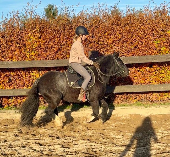 For sale is a strong 7-year-old Tinker mare standing approximately 137 cm tall, with excellent conformation and beautiful movement. She is a dream to handle, very well-behaved, and easy to manage. She also knows and likes children. She has been ridden in her leisure time and remains calm and steady. She moves comfortably in all gaits both in the arena and in the field. She is not easily spooked and is not a racehorse. She would likely be perfect for a riding school or a family. She is also absolutely manageable when it comes to farrier work and loading. She can be kept in a robust manner and is compatible with other horses in the herd. Her mane has been trimmed, as she had an excessive amount of mane. No signs of mud fever! Her hooves have already been recently trimmed. No illnesses or allergies are known. An AKU (pre-purchase examination) can be performed upon request. We charge €35 for a trial ride, pre-ride, or other testing of the horse. This amount will be credited upon purchase. Please call or send a message to 0157 36803742. All information provided is without guarantee. Price may be subject to change. Transport possible. Online purchase available.