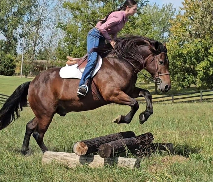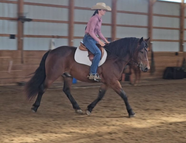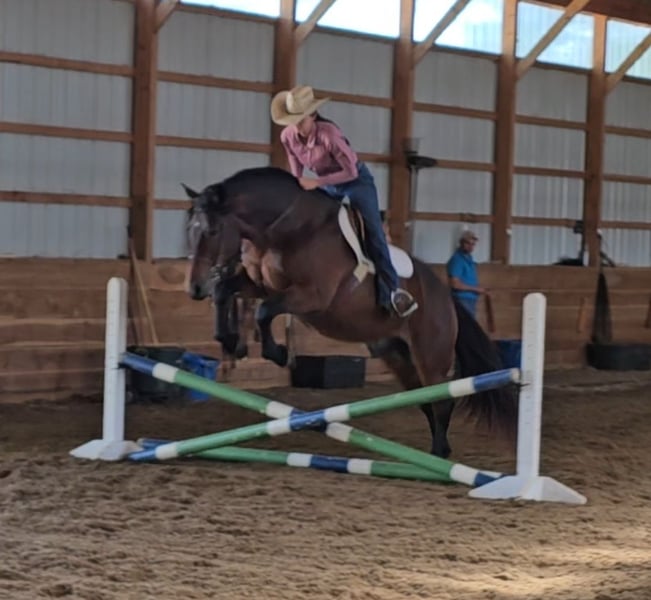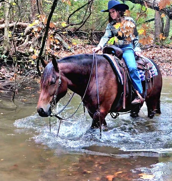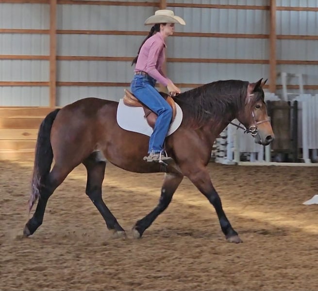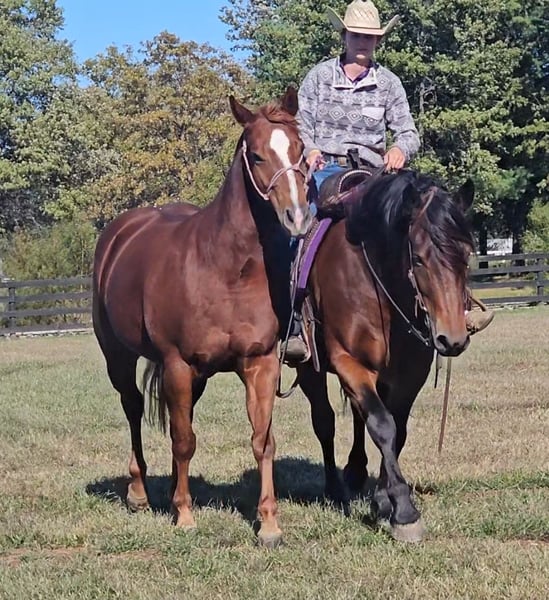 ⚜️𝐓𝐇𝐄 𝐅𝐀𝐋𝐋 𝐇𝐄𝐑𝐈𝐓𝐀𝐆𝐄 𝐂𝐋𝐀𝐒𝐒𝐈𝐂⚜️ Happening now thru MONDAY | NOVEMBER 3rd - Available EXCLUSIVELY on HorseBid's website! For more details and to register visit: www.Horsebid.com CONSIGNOR CONTACT: Pleasant Valley Equine 434-981-3863 LOCATION: Robards, KY BREED: Gypsy / Quarter Horse Cross REGISTERED: No REGISTERED NAME: Bear COLOR: Bay HEIGHT: 14.3 AGE: 9 GENDER: Gelding If your looking for a dependable gelding to hit the trails with, work cattle, jump jumps in a field and maybe even start roping look no further. Let me introduce Bear. After you get to know him he will reminde you of a cuddly teddy 🧸 Bear is picture perfect standing 15.1hh & 1300lbs. He is absolutely one of a kind. Bear has a beautiful thick main and tail and loves to stand for hours to be brushed and braided. You will just fall in love with his great disposition. Bears HISTORY.... Bear was purchased from us 2 years ago. To be a part of small therapeutic program. He is loved & adored. Bear had a calming, relaxing air about him he could calm the most anxious & stressed person. He was rode through flocks of sheep & milking cows. They spent lots of time working on dressage moves in their indoor. His owner has decided to get into Western Pleasure & wants to start showing. They must decrease their herd to make room. Before this Bear lived in Tennessee on an exclusive trail riding resort where he packed well known politicians in the arena & down the trail. These were riders that have never rode before or seen a horse. There not many Gypsy Crosses that ride like this guy. He is more of a push style, but will lope off from a stand still. He has a rocking chair lope and will jog slow and soft. Bear has a one hand neckrein, gets his leads, side pass, will do turnarounds, work a gate, back soft, and he has a huge stop. He will ride away from the barn with no funny business, in big groups, or out alone. He’s seen all kinds of wild life and spent many miles in the fields and woods. He will do all the trail obstacles with no hesitation and an absolute blast to ride. He is great for any level rider young or old. Bear also rides english. He's started going over small jumps and seems to enjoy it. He spent the last couple months working on his Dressage moves. Bear has the best ground manners, is easy to catch in the field, and gets along with other horses. He stands for saddling, bathing, and for the farrier. Currently Bear is barefoot and does not require shoes. He will kindly drop his head to make bridling easy. With just a snap of your finger, Bear will side pass to a picnic table, truck bed, log, or trailer fender to make mounting easy. He’s 100% sound with no vices and up to date on vaccinations. Check out Bear MUST SEE video and make an appointment to day to meet him. ☆Ask about our Gurantee on Bear.